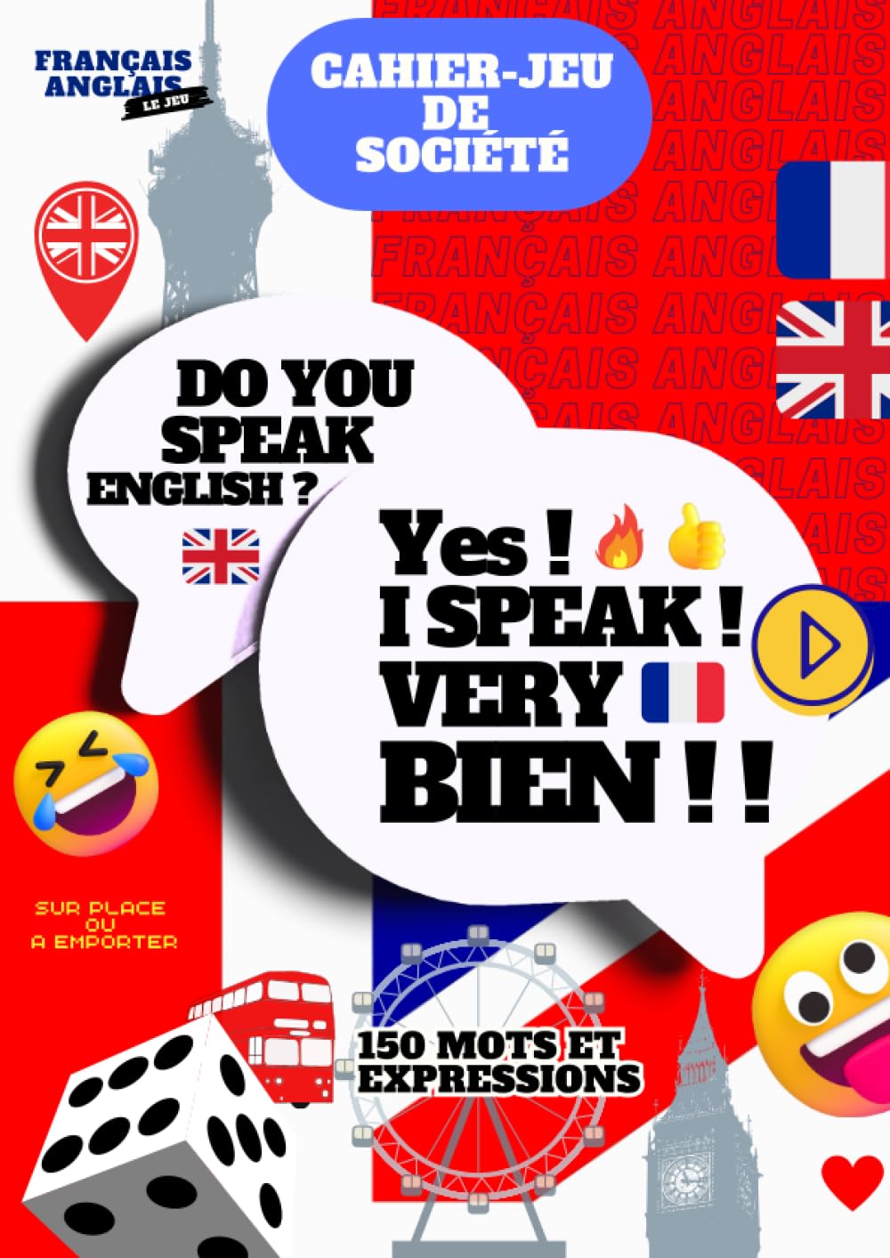 J'apprends l'anglais et le français autrement avec le Cahier-Jeu de société. Niveau débutant pour apprendre facilement le vocabulaire tout en s'amusant, parfait pour s'occuper en vacances, en camping, en week-end à la maison, le soir ou en voyage. Un Cahier-Jeu de société joyeux et ludique pour apprendre l'anglais et le français et vice et versa. Ce Cahier-Jeu innovant vous permettra de (re)démarrer l'apprentissage de l'anglais avec sérénité. Vous mémoriserez l'essentiel sans difficulté et avec plaisir ! APPRENDRE L'ANGLAIS ET LE FRANCAIS EN S'AMUSANT . Découvrez Comment enrichir votre vocabulaire facilement ! Une technique d'apprentissage efficace pour améliorer son vocabulaire - C'est le Cahier-Jeu de société idéal pour stimuler l'apprentissage ! Cette série de Cahiers-jeux a été conçue pour que chaque personne puisse apprendre tout en s'amusant, que vous soyez débutant, intermédiaire ou que vous aidiez votre enfant à apprendre une nouvelle langue. C'est un excellent complément pour tous ceux qui apprennent une langue étrangère. Comment s'éveiller et s'initier à la langue anglaise ou française en apprenant les mots du quotidien. Offrez le Cahier-Jeu de société anglais-français / français-anglais ! 150 mots et expressions simples de tous les jours. Une occasion unique de rire, d'apprendre et de continuer à s'amuser ensemble. Préparez-vous à passer un moment de plaisir inoubliable en famille, entre amis ! Installez-vous confortablement et munissez-vous d'un dé, d'une feuille de papier et d'un stylo pour commencer à jouer. Ce Cahier -jeu , éducatif et interactif, de 150 mots et expressions, va stimuler votre vocabulaire et vous apprendra à reconnaître les mots dans les différents domaines de la vie de tous les jours : curieux, voyageurs, expatriés, avec cultures différentes, en vacances…. Alors, qu'attendez-vous ? Ne perdez pas un instant et cliquez dès maintenant sur le bouton « Acheter » A offrir en cadeau d'anniversaire ou de Noël, ce Cahier-jeu fera le bonheur de tous !!
