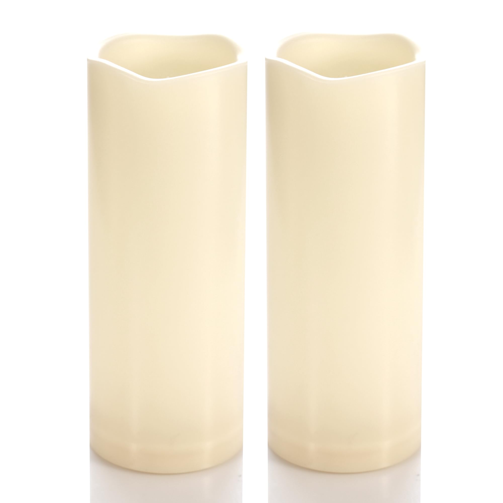 For outdoor and indoor use. These plastic battery candles are waterproof and designed for outdoor use to decorate your hurricane lantern, garden, yard, patio, swimming pool, or an outdoor activity such as a BBQ party. Of course, the resin pillar candle can be used indoor to decorate your fireplace and rooms as well. Flameless candle creates a warm, peace, and romantic ambiance. Multi purposes. Battery powered plastic flameless pillar candles are widely used in home décor, holiday, festival and party decorations, flameless candles are ideal decorative lights and table centerpieces for birthday, baby shower, bride/bridal shower, baptism, engagement, wedding, anniversary, graduation parties. They are also perfect gifts for New Year’s Day, Valentine’s Day, Easter, Mother’s Day, Halloween, Thanksgiving, Christmas and so on. Easy to use with timer. There is a built-in timer inside each battery LED candle. Once the pillar candle is turned on, the timer starts to work. The LED flameless candle stays on for 6 hours and turns off automatically for the next 18 hour. This 6-hour on, 18-hour off cycle repeats every day. The daily cycle timer saves the troubles of turning on and off this flameless LED candle light manually. Super long battery life. With energy saving technology, these flameless LED pillar candles with timer have extremely long battery life. Each pair of alkaline batteries last around 1500 hours. The long battery life feature saves your money on batteries and troubles of frequently changing batteries. Looks and flickers like a real candle. With bright flickering LED bulb and realistic appearance, the plastic resin battery candle looks like and flickers like a real candle. Safe to use with. Battery operated LED flameless candle is safe to use with, especially when you have children, seniors and pets at home. There is no fire hazard, no fume and no wax mess. Specifications: