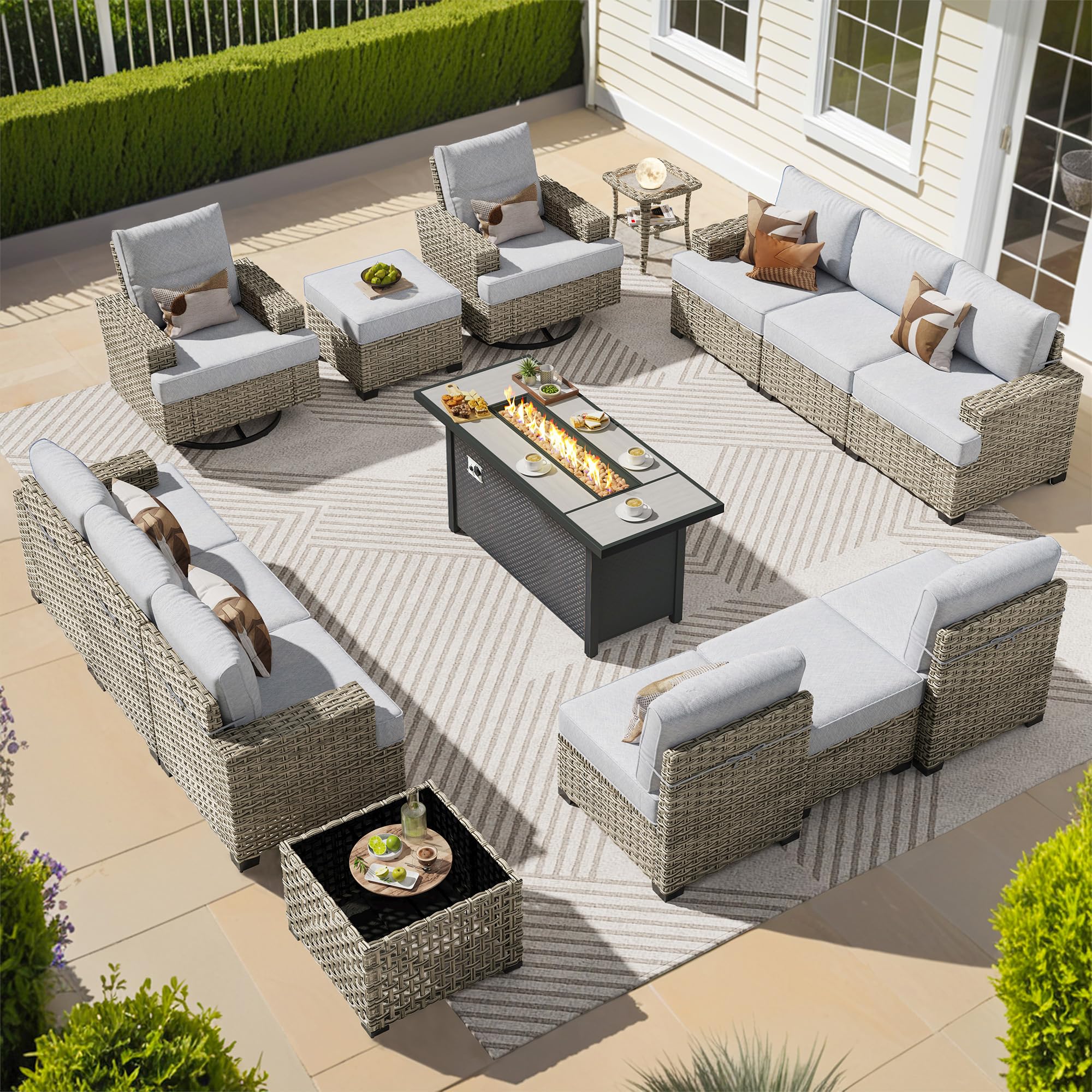 Versatility is a key characteristic of this sofa set. The fire pit is not only for aesthetics but can also be used for cooking, providing a unique and convenient option for outdoor grilling. Enjoy the flavors of a backyard cookout without the need for a separate grill.