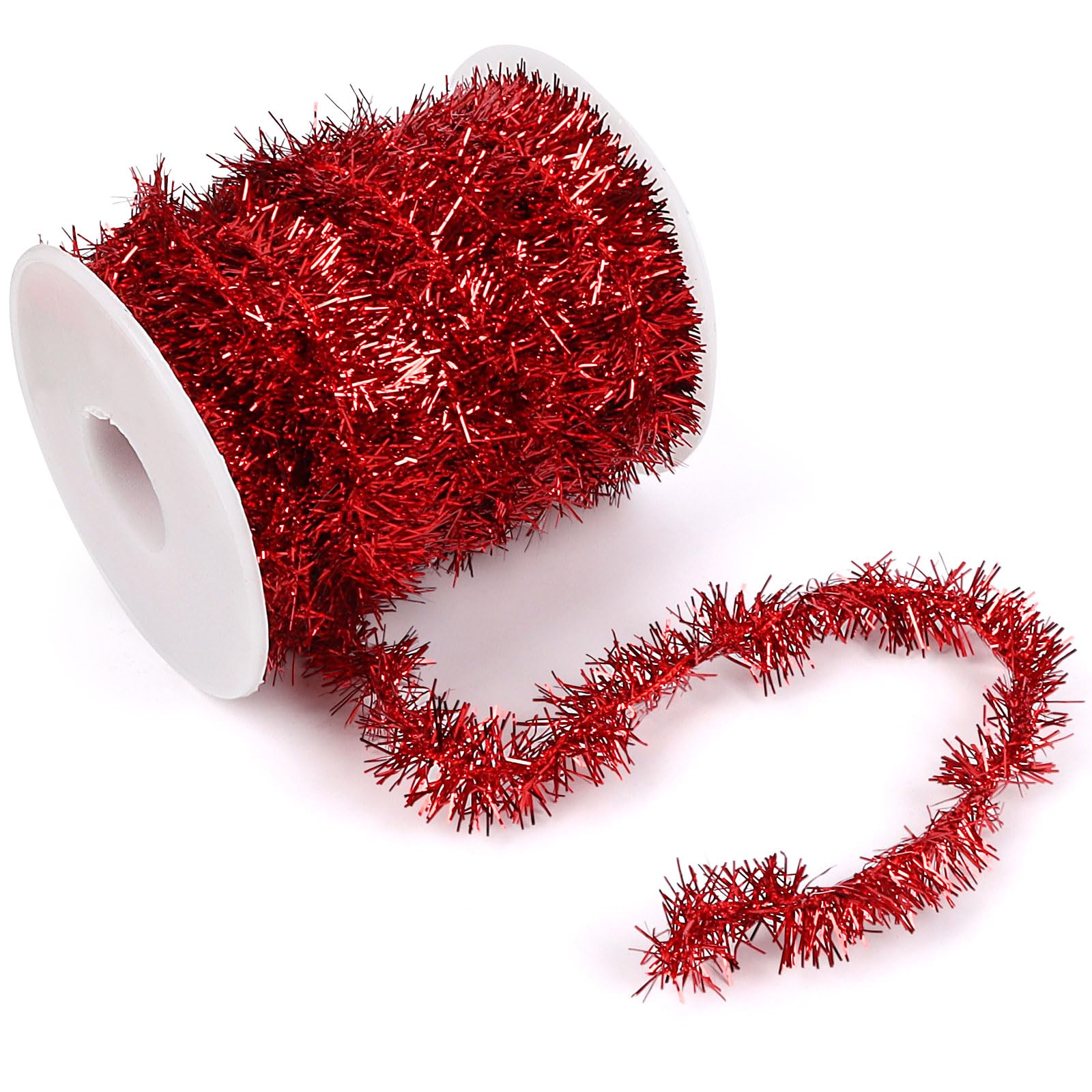 Package Content: You will receive 1 roll of 65.6 feet long red Christmas tinsel garland, which can add more Christmas atmosphere to your home. You can cut it into different lengths according to your needs to make various decorations. Size Information: The thin garland measures about 0.8 inches x 65.6 feet / 2 cm x 20 m. Its thinner width gives it an elegant look, making it suitable for various occasions, while the sufficient length can meet your different decoration needs. Premium Material: Crafted from high-quality tinsel and plastic, our ribbon is non-toxic, odorless, durable, and sturdy. It offers versatile uses, is highly reusable, and is easy to carry, ensuring a pleasant decorating experience. Easy to Use: The red glitter ribbon is easy to use. You can bend or cut it into different shapes and lengths according to your needs, hang it on the Christmas tree and wrap it around other places you want to decorate. When not in use, you can easily remove and keep it in a cabinet or box, then reuse it next time. Wide Applications: Our Christmas tinsel garland is suitable for decorating your Christmas tree, garden, door, window, wall, or other corners in your house. It is also great for decorating weddings, parties, gift wrapping, holiday DIY crafting, and other occasions. Red Christmas Tinsel Garland: Shimmering Festive Elegance Elevate your festive decor with our red Christmas tinsel garland, a versatile and durable decorative essential. Package Content Each order comes with 1 roll of 65.6 feet long red tinsel garland. Its shimmering red color instantly adds a warm, festive glow to any space. Cut it into different lengths to adorn your Christmas tree, wrap around banisters, or create custom ornaments. Size Information Measuring 0.8 inches wide and 65.6 feet long, the thin, sleek design offers an elegant look. The narrow width makes it suitable for minimalist or elaborate setups, while the ample length allows for decorating large trees or multiple areas. Drape it over mantels, windows, or use it as a backdrop for a dazzling effect. Premium Material Crafted from high-quality tinsel and plastic, the garland combines sparkle with durability. The tinsel provides a vibrant, glittering finish, while the sturdy plastic core ensures it retains its shape. It’s non-toxic, odorless, and safe for homes with children and pets. Lightweight and flexible, it’s easy to handle and can be reused for years. Easy to Use Bend, twist, or cut the garland with scissors to fit any project. Hang it vertically on doors, wrap it around pillars, or use it for gift wrapping. When the festivities end, simply remove and store it in a box for future use. Wide Applications Beyond Christmas, this garland is perfect for weddings, parties, and DIY crafts. Use it to decorate arches, create photo backdrops, or add a touch of glamour to gift bows. Its versatility makes it an essential for any occasion that needs a touch of sparkle.