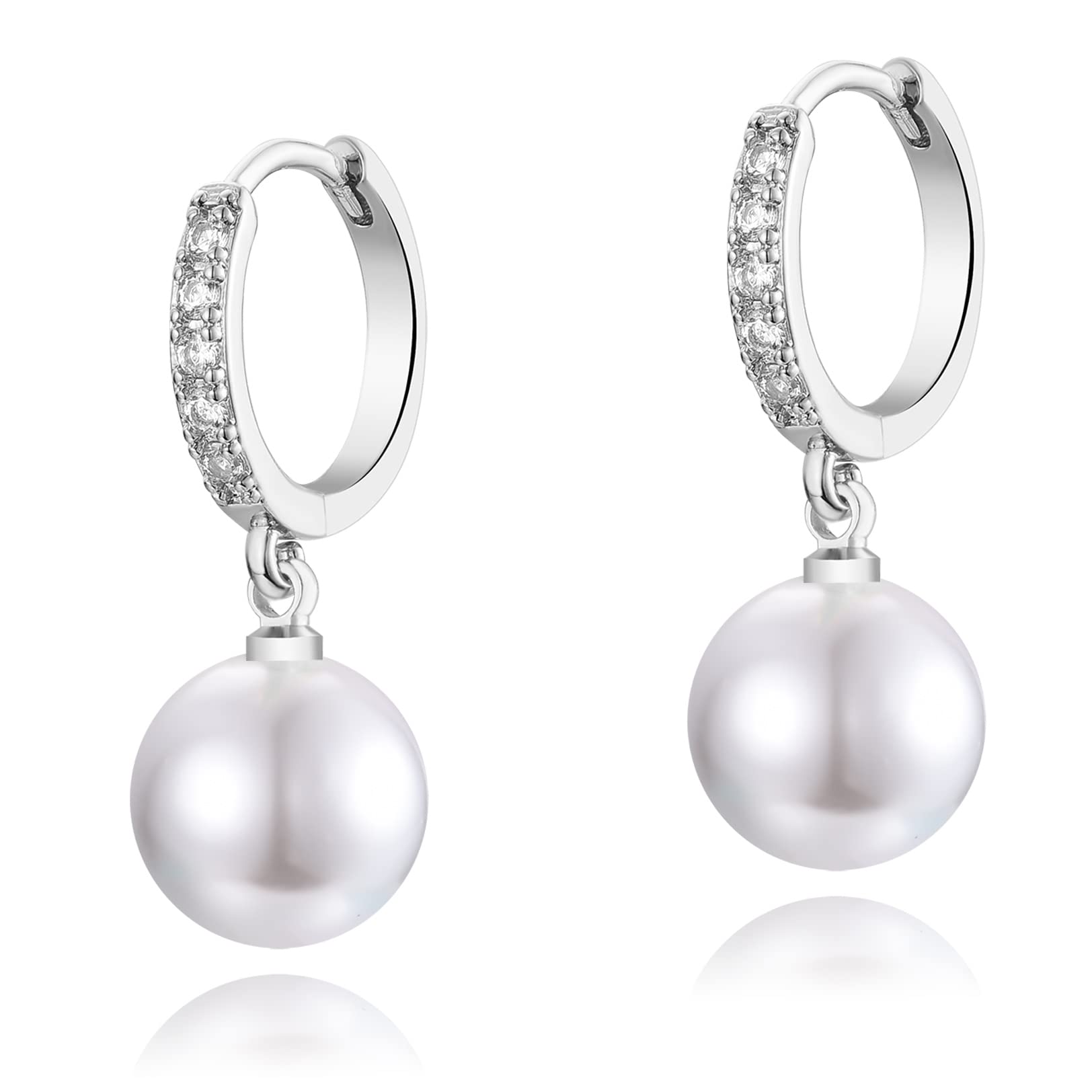 CERSLIMO Pearl Earrings for Women, S925 Sterling Silver Post Pearl Drop Huggies Hoop Earrings