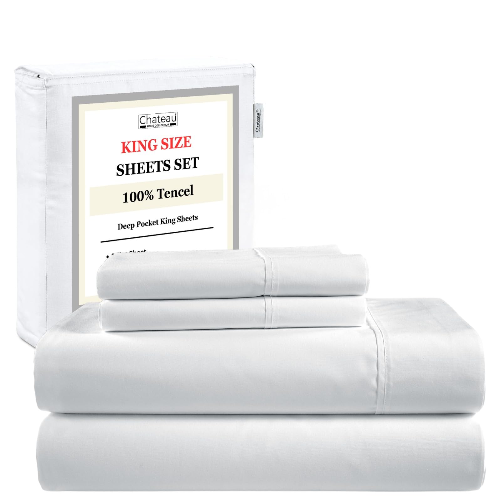 Complete Sheet & Pillowcase Sets: Our 4-piece king-size sheet set includes 1 fitted sheet king size (78" x 80"), 1 flat sheet king size (108" x 102"), and 2 king pillowcases (20" x 40"), providing a complete bedding solution that's perfect for upgrading your bedroom. Our 15-inch deep pocket sheets are designed to fit mattresses upto 17 inches and features a rip-resistant elastic to ensure a snug fit. Cooling Sheets: Our king sheets feature a moisture-wicking capability that efficiently draws away sweat and excess humidity from the body, promoting improved breathability and preventing discomfort or a clammy feeling during sleep. Additionally, the sheet set is designed with cooling properties specifically catering to hot sleepers. The fabric's inherent breathability and moisture-wicking abilities work harmoniously to create a cool and comfortable sleeping environment. Year-Round Luxury: The tencel lyocell fibers in our cooling bed sheets possess thermal-regulating properties, allowing them to adapt to the body's temperature fluctuations. These sheets can help cool down the body during warm periods by facilitating the escape of heat and moisture. Conversely, they provide warmth and insulation in cooler surroundings. This dynamic temperature regulation promotes an optimal sleep environment throughout the night, making our sheets suitable for year-round use. Tender Care: For ensured longevity and continued luxurious feel,we recommend you to follow our wash care instructions diligently. Machine wash seperately your king size deep pocket sheets in cold water using a gentle cycle and mild detergent (without bleach,fabric softners or harsh chemicals).Tumble dry on low heat or delicate setting and promptly remove from the dryer. Iron on low heat if necessary, and avoid dry cleaning. Cool Comfort for Hot Sleepers: Designed with nature's breathability, these sheets are a haven for hot sleepers. Our queen sheets cooling wick away moisture and allow air to circulate, keeping you cool, dry, and comfortable all night. Elevate your sleep experience with our 4-piece Tencel sheet set in sophisticated dark grey, designed for King-sized beds. Featuring premium Tencel fabric, these sheets provide a silky-smooth texture and excellent breathability for optimal comfort.The rich dark grey color adds a sleek, modern touch to your bedroom decor, while the easy-care fabric ensures enduring quality and convenience.