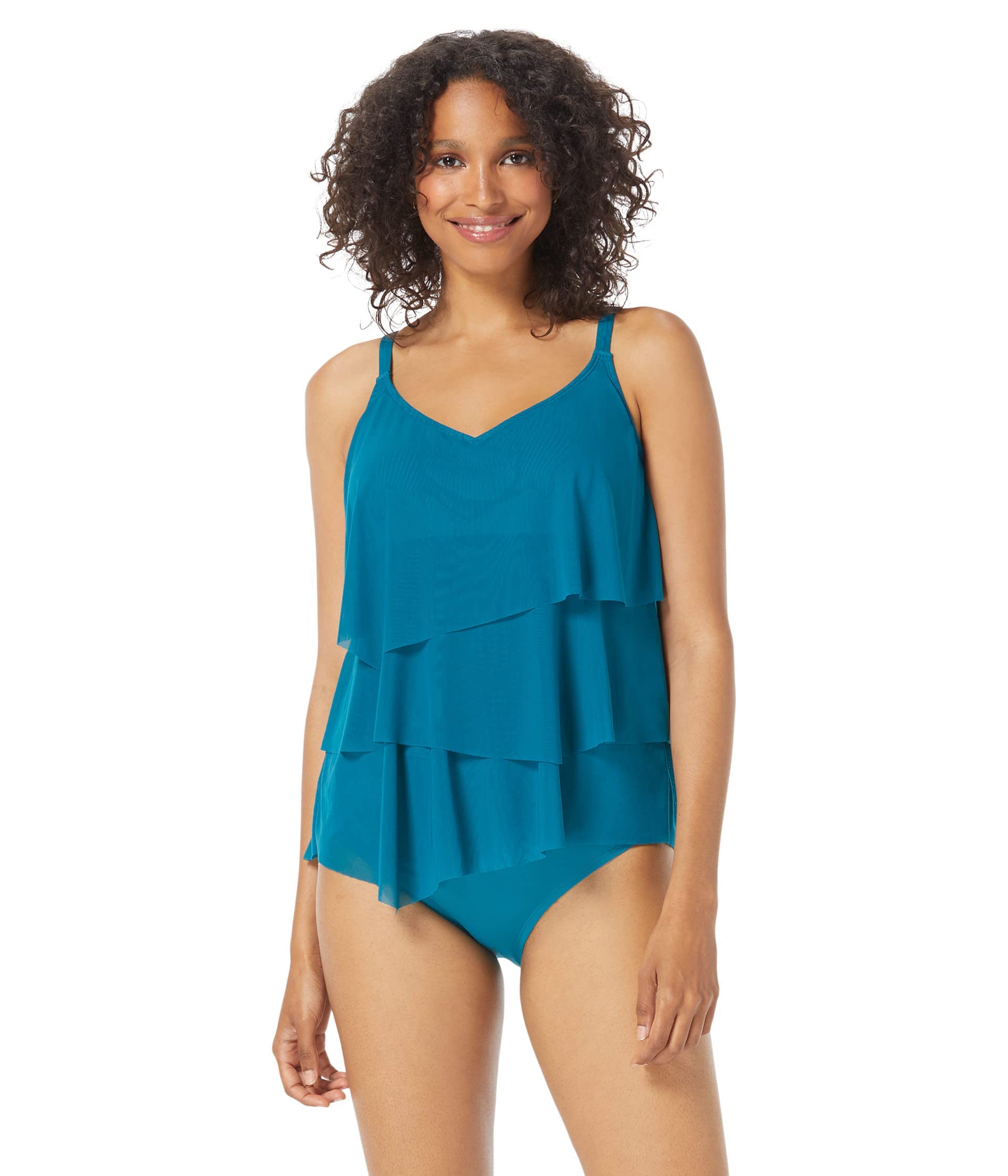 Look sizzling at your next pool party wearing the stylish COCO REEF Classic Solid Bra Sized Tiered Mesh Tankini. Deep V-neckline with adjustable straps for comfort. Underwire for shapely support. Hidden bra hook on the back. Shelf bra. Look sizzling at your next pool party wearing the stylish COCO REEF Classic Solid Bra Sized Tiered Mesh Tankini. Deep V-neckline with adjustable straps for comfort. Underwire for shapely support. Hidden bra hook on the back. Shelf bra. Removable soft cups. Tiered mesh layers. Asymmetrical hem. Body: 85% nylon, 15% spandex ;Mesh: 95% nylon, 5% spandex. Hand wash, line dry. Imported.