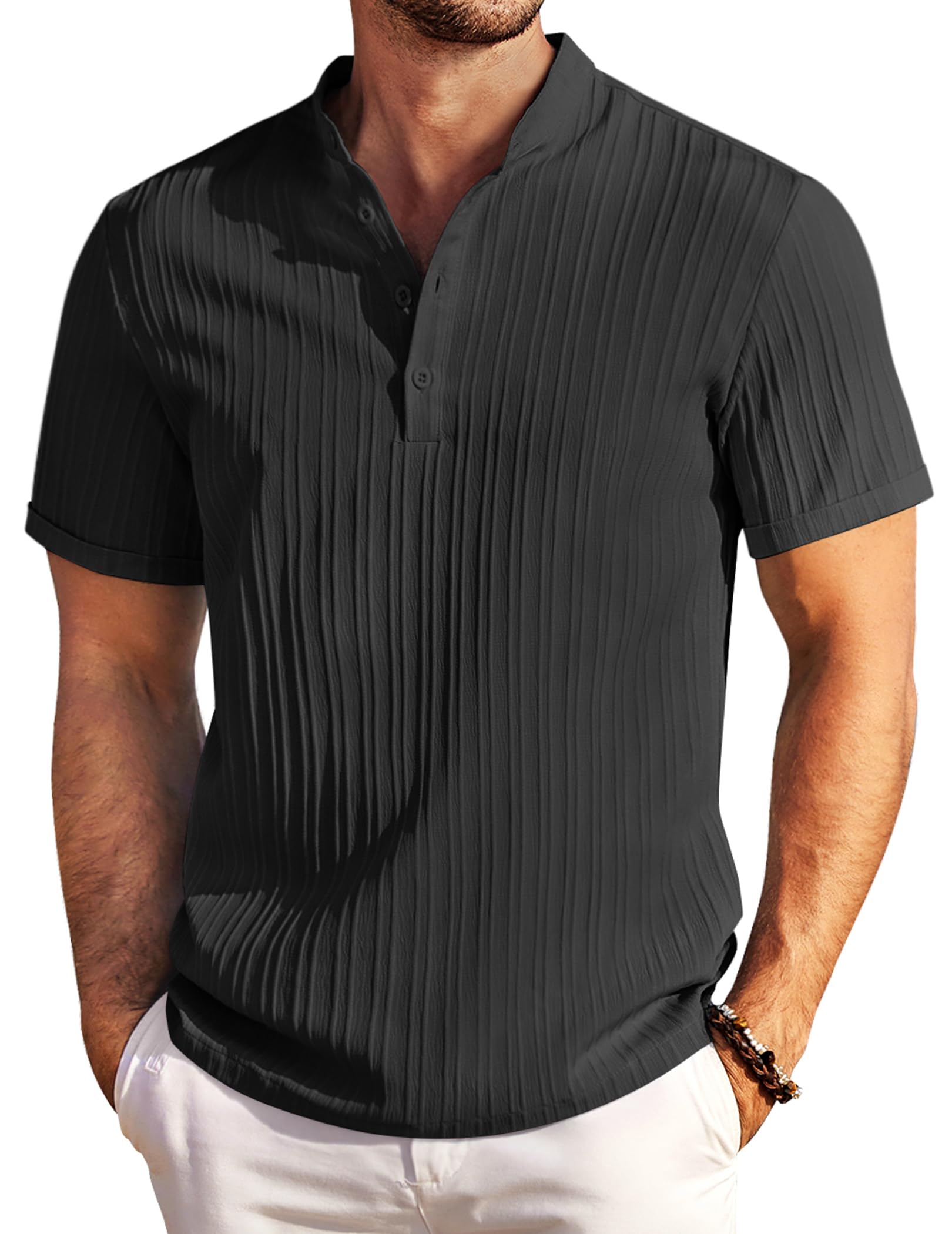 COOFANDY Men Henley Shirt Casual Short Sleeve Summer Beach Hippie Band Collar Fashion Textured Shirts