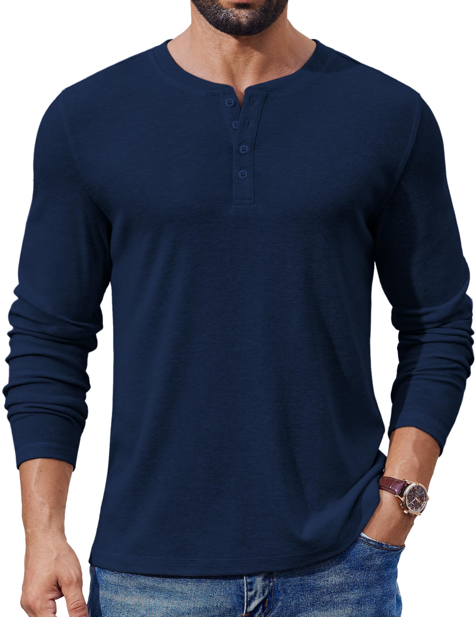 COOFANDY Mens Henley Shirts Long Sleeve Lightweight Buttons T-Shirts Casual Basic Pullover Top