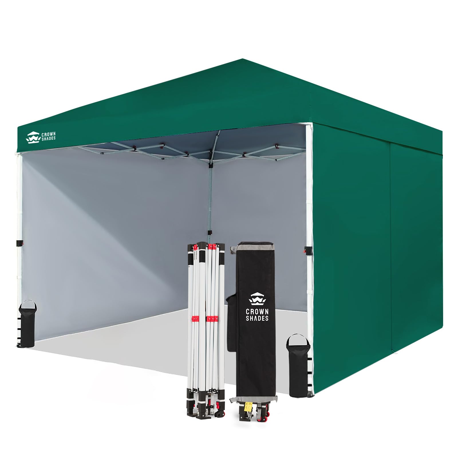 Your CROWN SHADES 10' X 10' outdoor canopy with 4 sidewall is perfectly designed to provide a large and reliable temporary shade for outdoor activities. It works great for commercial or recreational uses such as small businesses, craft shows, tailgate parties, picnics, camping, outdoor sporting events and street markets. Your instant shelter canopy features a steel frame with a cross-truss ceiling design that provides high strength and great stability. It can be set up in few minutes. The commercial fabric top provides excellent protection. Enjoy life and be safe in the sun with your CROWN SHADES instant canopy.