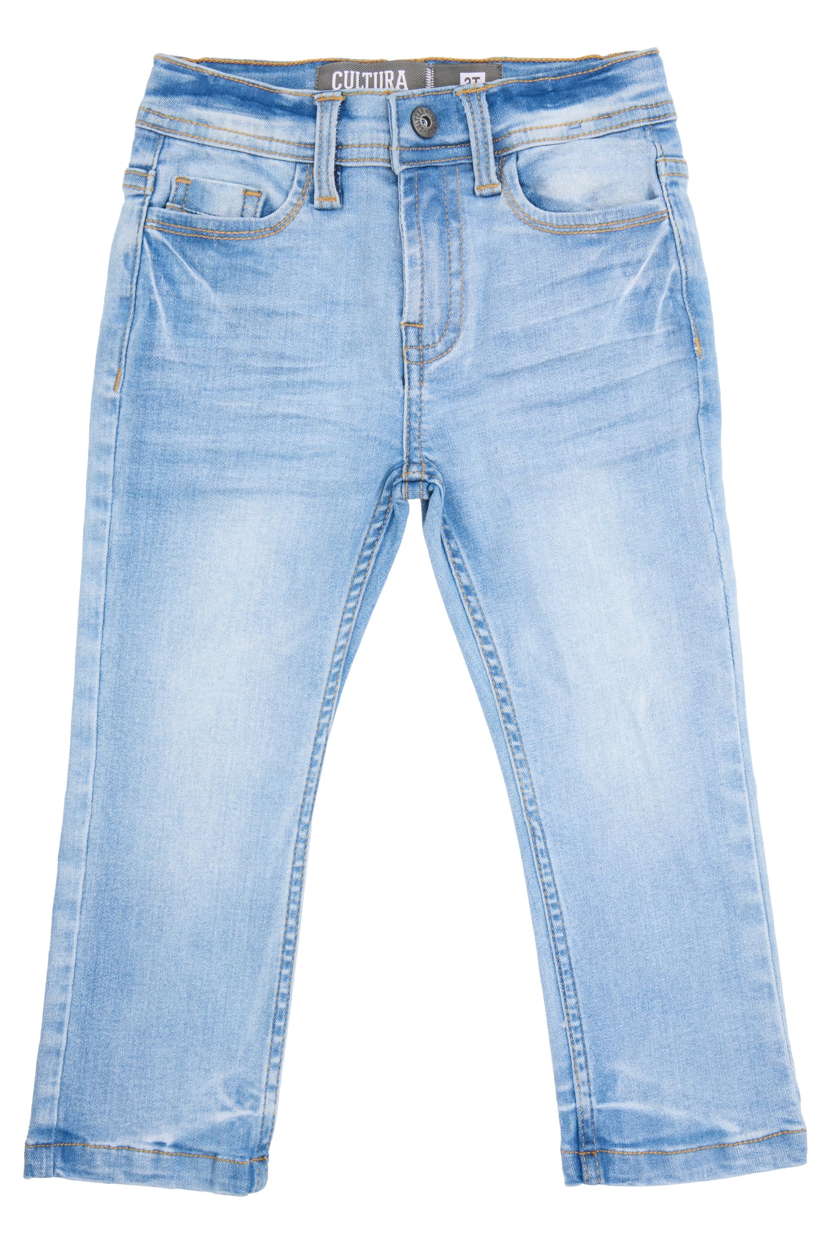 Stylish Stretch: Crafted from a comfortable cotton blend material, these baby boy pants offer the perfect balance of stretch and durability, ensuring your little one can move freely while staying stylish. Adorable Back Pockets: Elevate your baby boy's wardrobe with these boys jeans featuring trendy back pocket designs, adding a touch of flair to his outfit. Versatile Sizing: Available in sizes 2T to 4T, these baby boy jeans are tailored to fit toddlers at various stages, ensuring a snug and comfortable fit as they grow. SIZE NOTE : Consult our size guide for accurate measurements. Easy Wear, Easy Care: Designed for busy parents, these jeans for kids are easy to put on and take off, and they're machine washable for hassle-free maintenance. Everyday Essentials: Whether it's playtime at the park or a family outing, these basic yet fashionable toddler boy jeans are a versatile staple for any toddler's wardrobe.