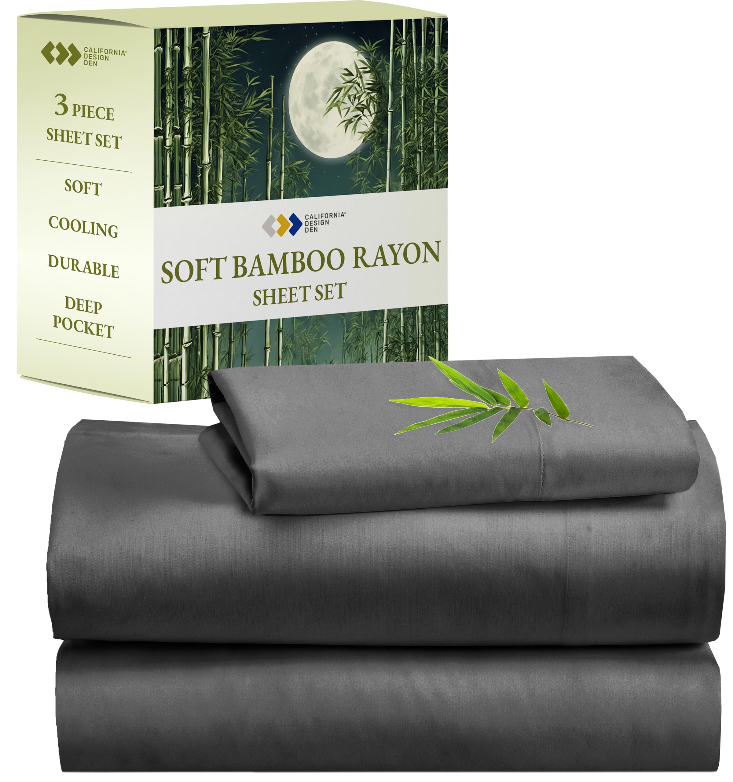 Cool Comfort for Restful Sleep: Experience our soft, lightweight and silky 100% rayon from bamboo sheets for twin bed. These sheets regulate temperature and wick away moisture, keeping you cool and comfortable year round, with the look & feel of real silk sheets twin size but without the luxury markup. Snug Fit: Our 3 piece twin size sheets set includes a flat sheet (66"W x 100" L), a fitted sheet (39"W x 75" L), and 2 standard/queen pillowcases (20" W x 30" L). The fitted sheet features deep pockets and an all around premium elastic for a snug fit on mattresses up to 14 inches deep. A smart head side/ foot side tag ensures effortless, perfectly made beds every time. Durable & Easy to Care: These grey twin sheets are crafted to withstand shrinkage, fading, and pilling. They maintain their luxurious softness and smooth drape even after countless washes. They are easy to care for. Toss them in the washer and dryer, and enjoy the feeling of freshly laundered luxury every day. Certified Safe Premium Quality: Made from the finest 100% Rayon derived from Bamboo, our sheets are Oeko Tex certified and free from harmful substances. Rest easy knowing your bedding is safe, sustainable, and gentle on your skin. Sustainable Comfort: Crafted with care, our sheets embody the perfect blend of luxury and responsibility. We’ve donated over 22,000 bedding pieces to local US charities and package our products sustainably without plastic. Experience exceptional support from our dedicated customer care team with every purchase. Experience unparalleled comfort with our 100% rayon from bamboo sheets. Designed for ultimate luxury, these sheets offer a silky, breathable feel that ensures comfort year-round. The rayon fabric is light and airy, effectively wicking away moisture and sweat for a restful sleep. Ideal for sensitive skin, it provides a cooler sleep experience and retains moisture to keep your skin soft and supple. The fitted sheet features all-around elastic for a snug fit and includes a head/foot side indicator for easy bed-making. Machine washable, these sheets remain soft and smooth even after multiple washes, without shrinking, fading, or wrinkling. Enjoy the blend of elegance and practicality with these premium sheets.
