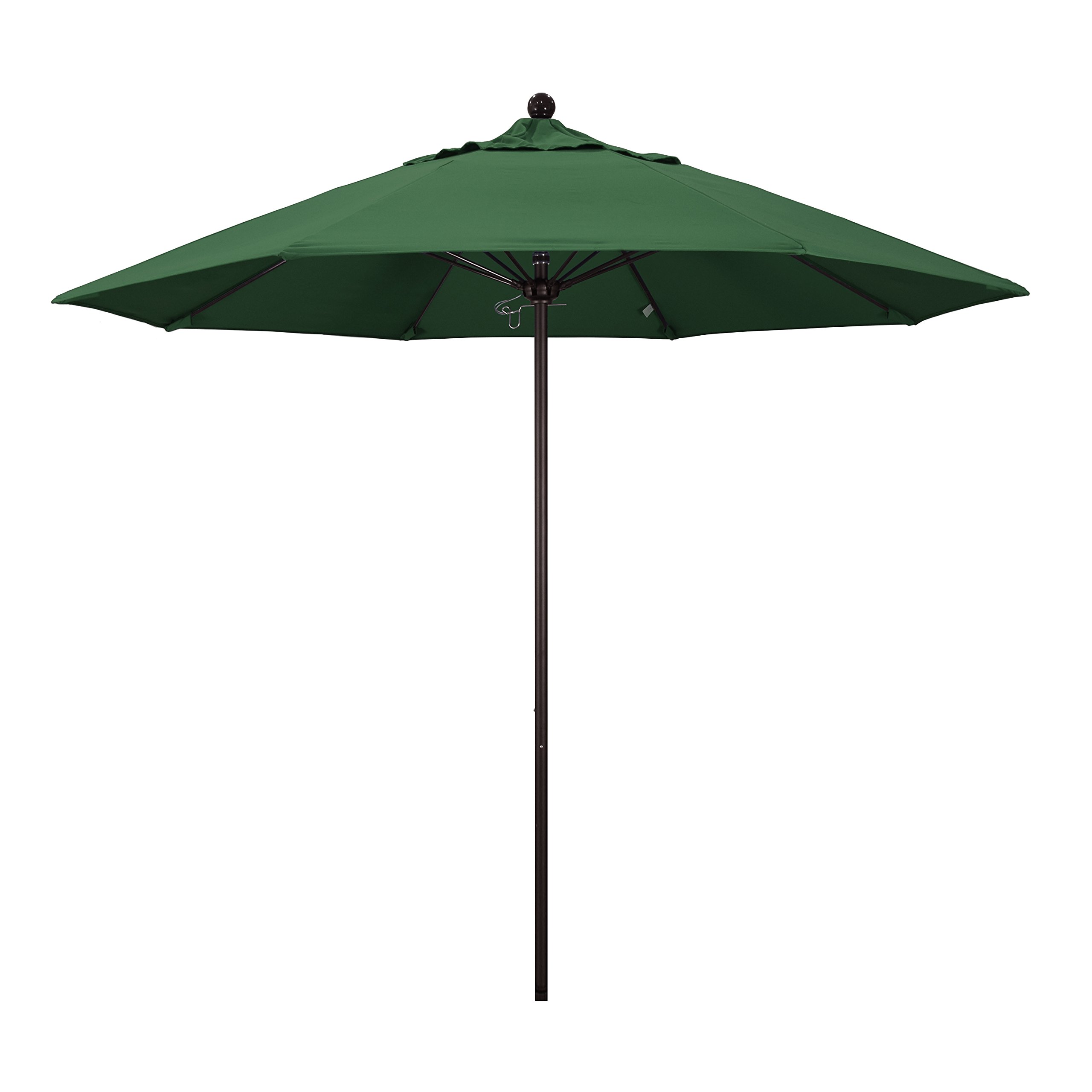 California Umbrella 9' Round Aluminum/Fiberglass Umbrella, Push Open, Bronze Pole, Olefin Hunter Green