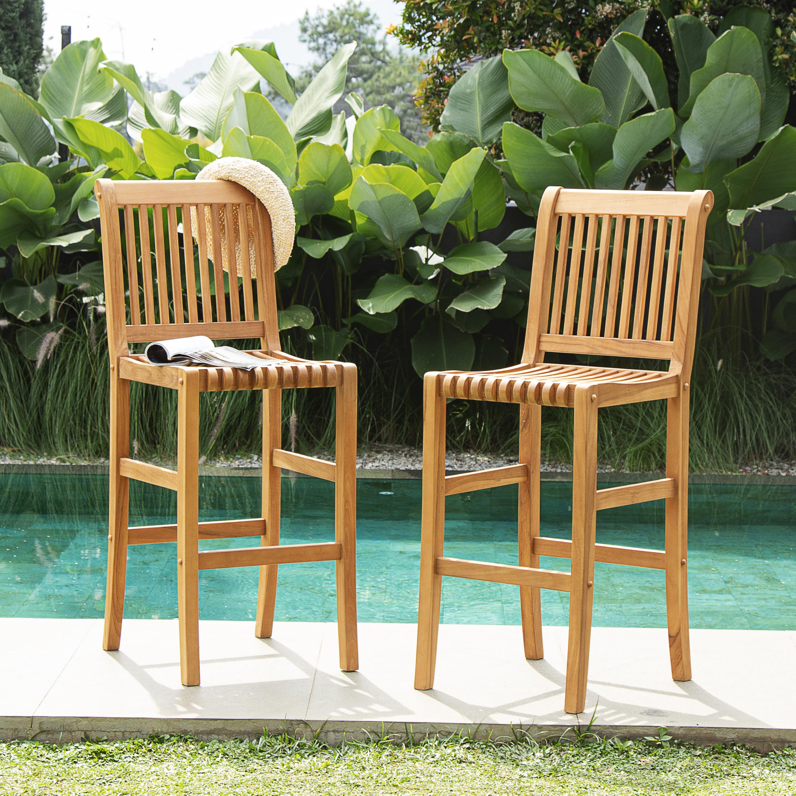 [SET OF 2] Including 2 patio dining chairs, this patio chair set offers exceptional value and elegance for your outdoor dining area. [PREMIUM TEAK WOOD] Made from top-grade Indonesian teak wood, our outdoor dining chairs feature sturdy and durable frame, ensuring long-lasting outdoor use. [NATURAL ELEGANCE] Teak wood pattern and warm tone of our outdoor chairs bring a fresh and inviting atmosphere to your porch, garden, backyard, deck, balcony, pergola, gazebo, poolside area, or any outdoor space. [SLEEK & VERSATILE DESIGN] Upgrade your outdoor dining with our sleek, versatile patio chairs, effortlessly blending with any outdoor decoration to bring a warm, stylish touch to your space. [COMFORTABLE SEATING] Enjoy exceptional comfort with our teak dining chairs, featuring ergonomically contoured seats that provide perfect support for relaxing meals and gatherings. [BUILT-IN FOOTREST] Enhance your outdoor area with our chic wooden dining chair, featuring a ergonomic back and built-in footrest for unmatched comfort and support during long, relaxed gatherings. [MULTIPURPOSE USE] Perfect for enjoying cocktails, casual conversations, or quick meals, our bar dining chair combines comfort and style, making it ideal for socializing and dining at your favorite space. [WEATHER-RESISTANT] Made from sturdy teak wood, famous for its exceptional durability against outdoor elements, this outdoor dining chair is designed to endure all weather conditions, ensuring year-round enjoyment. [WEIGHT CAPACITY] The strong and reliable frame of our teak outdoor dining chairs is designed to support up to 250 lbs each, providing both stability and durability. [EASY SETUP] Assembly will be effortless, with printed and video manuals accessible via a QR code included in the packaging, ensuring a seamless setup experience for customers.