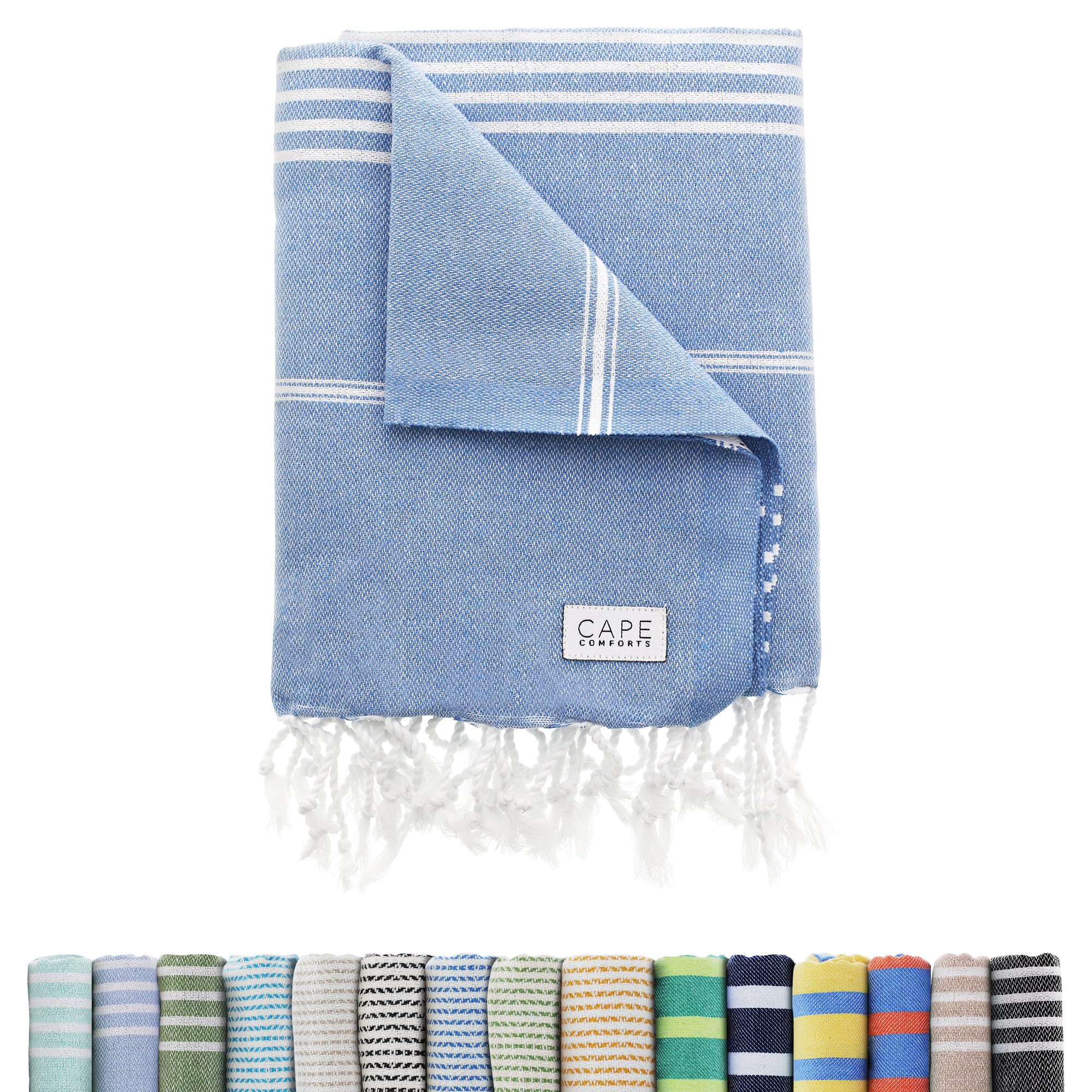 Ideal Beachside Companion: The Cape Comforts Classic Beach towel is your ultimate beachside essential. Perfect for sunbathing, picnicking, or just relishing the seaside air, this towel is specially designed to cater to all your beach-related needs. 37”x 67”. Color: Denim Blue. Durable Flat Weave: Our beach towel features a flat weave design that enhances durability, ensuring it can withstand the rigors of your beach adventures. Quick-Drying: Featuring a blend of 90% recycled cotton and 10% recycled poly, our soft and absorbent towels dry quickly. Perfect Travel Companion: Compact and lightweight, Cape Comforts beach towels are easy to carry. This makes them an ideal travel companion for family beach vacations, tropical getaways, or spontaneous day trips to the coast. Your Beach Journey, Our Inspiration: From the sandy shores to the rolling waves, Cape Comforts is more than a brand – it's a companion on your beach journey, elevating moments of relaxation, joy, and connection under the sun. Ideal Beachside Companion: The Cape Comforts Classic Beach towel is your ultimate beachside essential. Perfect for sunbathing, picnicking, or just relishing the seaside air, this towel is specially designed to cater to all your beach-related needs. 37”x 67”. Color: Denim Blue.