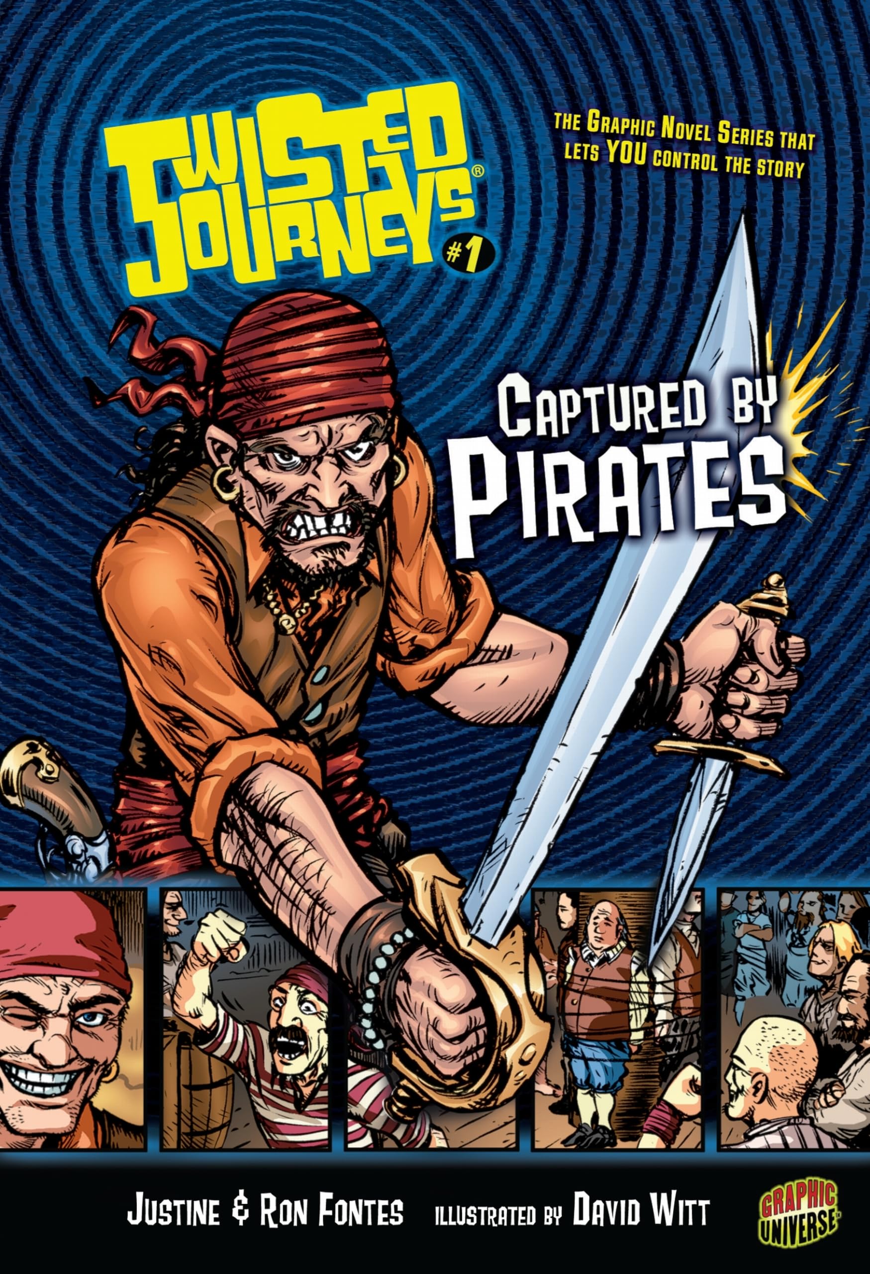 Match your wits against a band of pirates on the high seas and try to defeat them―or join them! Every Twisted Journeys® graphic novel lets YOU control the action by choosing which path to follow. Which twists and turns will your journey take? "There's enough variety to keep readers going for several entertaining journeys." -- Booklist "Where variations on the 'Choose Your Own Adventure' series are popular, this is sure to be a hit." -- School Library Journal Twisted Journeys(tm) In this Graphic Universe(tm) series, YOU choose what happens next in these full-color, action-packed graphic novels. Throughout the story, the reader selects from several options that determine where the plot will go. Every book has dozens of combinations to explore. Which twists and turns will YOUR journey take? Justine Fontes was born in New York City. She grew up on Long Island and later graduated Phi Beta Kappa with a B.A. in English Liternature from New York University. Justine found her first job in publishing while she was a Freshman. She worked at various publishing houses before becoming a freelance writer. At Little Golden Books , Justine met her future husband, Ron Fontes. They started writing together and have written over 500 children's books. Justine and Ron moved to Maine in 1988. Ron Fontes was born in Los Angeles. He grew up in Clarksville, Tennessee, where his mother taught him to read at age 4. By 16, Ron had a science fiction comic strip in the local newspaper. He was a theater major at Austin Peay State University, where he costumed and performed in many shows while working at a printing company to pay for school. Ron went on to act in film before becoming an advertising executive, and he then moved to New York City and worked for Whitman Comics and Marvel . Ron is a prolific artist and co-author of over 500 children's books with his wife, Justine. David Witt is an artist living and working in Saint Paul, Minnesota. His work as a poster artist has been published in the Art of Modern Rock by Paul Grushkin and Dennis King, and Gig Posters by Clayton Hayes. He has done menu screen art for Guitar Hero II, as well as creating numerous T-shirt designs and album art for bands around the world. He continues to work freelance and also finds time to paint and participate in art shows around the country. In the summer he spends most of his time in his garden. His work at Lerner includes Isis and Osiris , The Hero Twins , Nightmare on Zombie Island , Captured by Pirates , and Attack of the Mutant Meteors .