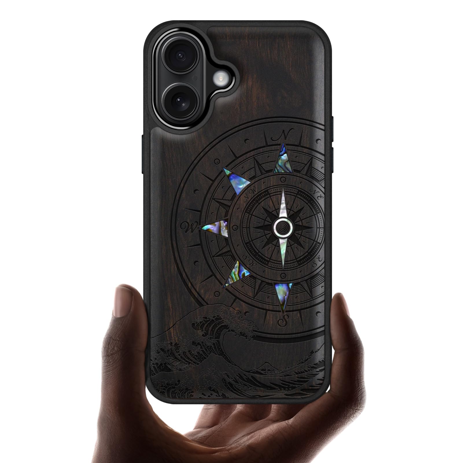 Carveit Magnetic Wooden Case for iPhone 16 Case, Wood Artisan Engraved & Handmade Shell Inlaid, TPU Shockproof Cover, Compatible with MagSafe Wireless