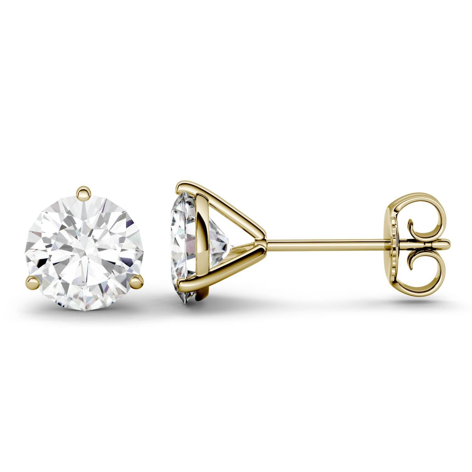 About the jewelry: These gorgeous Forever One stud earrings showcase 8.0mm round brilliant cut moissanite gemstones. Beautifully crafted in 14K yellow gold. Carat weight information: Each 8.0mm moissanite gemstone has a Diamond Equivalent Weight (DEW) of 1.90ct (Actual Weight 1.60ct). The pair of earrings has a total Diamond Equivalent Weight (DEW) of 3.80cttw (Actual Weight 3.20cttw). Laboratory -Grown Gemstone: Charles & Colvard Forever One G-H-I is a near-colorless gemstone with a slight icy hue. Cut from our high-quality material and possessing the same optical properties as our D-E-F gemstone, G-H-I has a cool-toned body color that gives it a unique look and differentiates it from other gemstones on the market today. Color grades are based on the Gemological Institute of America’s diamond color grading scale. About Moissanite: Moissanite created by Charles & Colvard is the most brilliant gemstone and is among the hardest minerals on the planet. It scores 9.25 on the Mohs scale for hardness and is more durable than sapphire, ruby, or emerald. Buy with Confidence: Based in the US for more than 20 years, Charles & Colvard is the original creator of moissanite. Our moissanite is covered by our limited lifetime warranty. These gorgeous Forever One stud earrings showcase 8.0mm round brilliant cut moissanite gemstones. Beautifully crafted in 14K yellow gold. Each 8.0mm moissanite gemstone has a Diamond Equivalent Weight (DEW) of 1.90ct (Actual Weight 1.60ct). The pair of earrings has a total Diamond Equivalent Weight (DEW) of 3.80cttw (Actual Weight 3.20cttw). Charles & Colvard Forever One G-H-I is a near-colorless gemstone with a slight icy hue. Cut from our high-quality material and possessing the same optical properties as our D-E-F gemstone, G-H-I has a cool-toned body color that gives it a unique look and differentiates it from other gemstones on the market today. Color grades are based on the Gemological Institute of America’s diamond color grading scale. Timeless and classic genuine simulated stones that shine and never loses brilliance. Makes the perfect gift for the woman in your life; wife, grandma, aunt, daughter, mother, or your best friend. Give as a gift for birthdays, anniversaries, Christmas, graduation, wedding, inspiration or just because! Perfect for any occasion; Bridal jewelry that’s simple, trendy, fashionable and comfortable. Quality authentic jewelry for all ages and crafted with perfection. Sparkling brilliant diamond-like high-quality luxury simulated studs. Can be worn in cartilage or ear lobe and great for men and women. Compliment your look and pair with a necklace, bracelet or ring for that trendy minimalist look. Comfortable and can wear every day or for that special occasion.