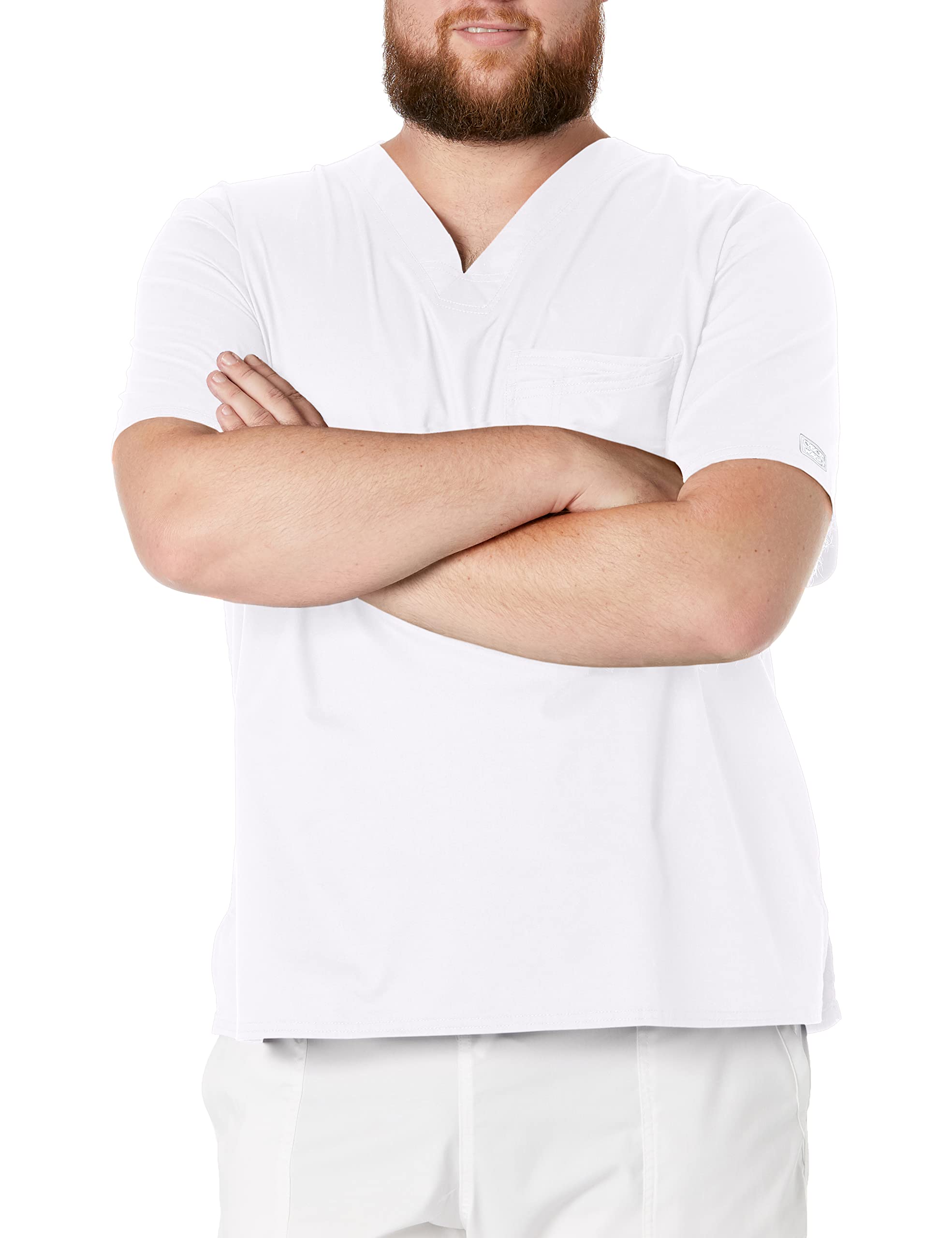 V-NECK STYLING - This comfortable v-neck medical scrub tops offers healthcare workers a uniform that is professional, hardworking, and stylish. These are the scrub tops men will buy again and again. Cherokee scrub tops for men are more durable. VERSATILE SCRUB TOP - Our men's scrub top has a traditional fit. Provides comfort at max with its pencil stitch, back yoke, side vents, and center back length of 29" for your daily activities. Easy care and breathable material for all-day use. DOUBLE CHEST POCKETS - Our surgical v-neck scrub tops features a double chest pocket with pencil stitch for storage. You can carry this scrub top elegantly by tucking it in or keeping it untucked, you'll look stylish both ways. SIZES UP TO 5XL - This Cherokee traditional fit scrub top features an ultra-soft, fade resistant & stretchable fabric. Available in sizes from XS to 5XL. Our men's scrub tops are available in all sizes and fit all body types. QUALITY YOU CAN TRUST - The Cherokee collection medical uniforms are dependable, practical, and affordable. These men's medical scrub shirts work as long and as hard as you do. Cherokee scrubs tops for men that include durable and reliable.