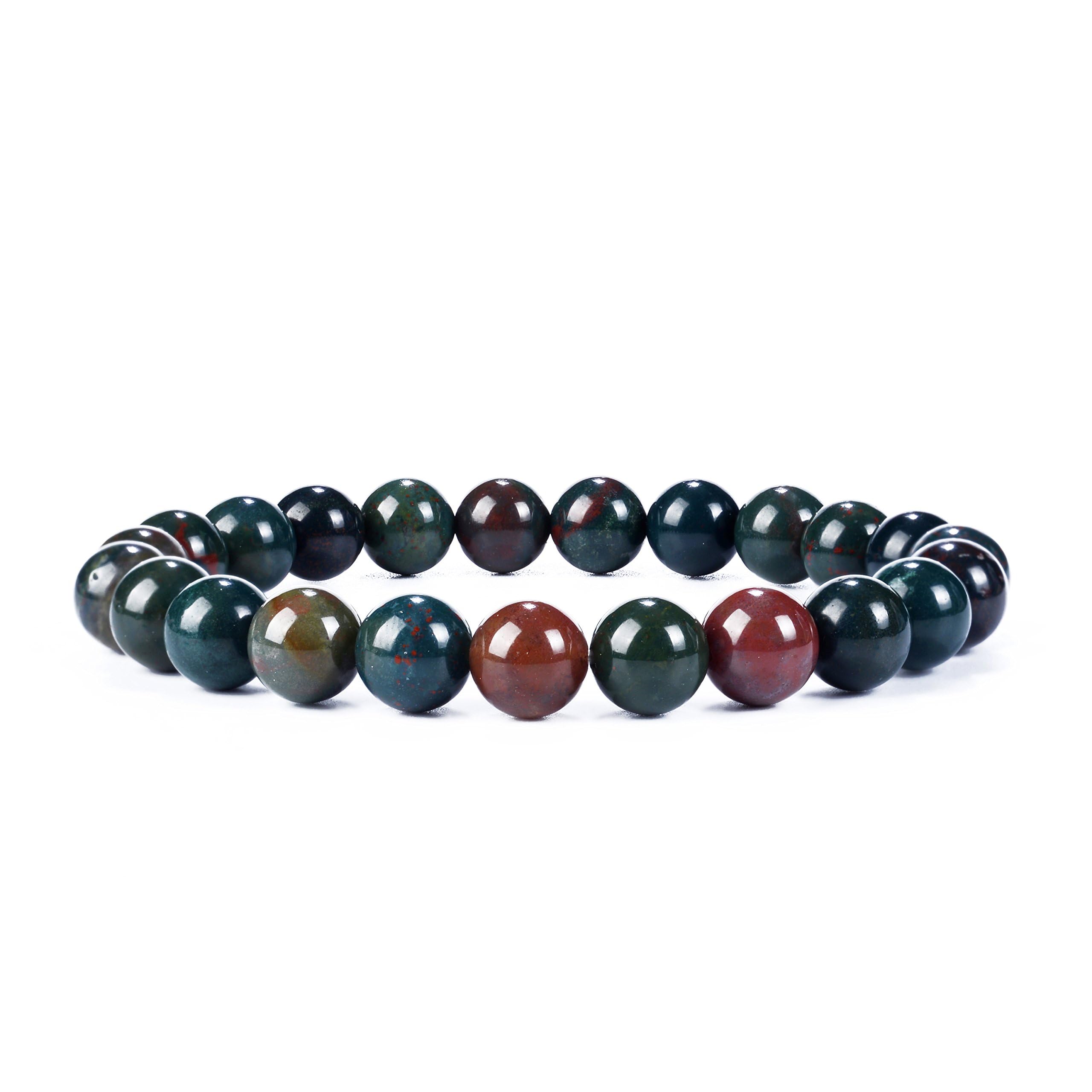 CONTAINS: A bloodstone bracelet made with 8mm semi-precious beads packaged inside a protective cloth drawstring pouch. Bloodstone is an opaque green form of jasper with tiny red hematite inclusions. The tiny red inclusions resemble drops of blood, thus the name bloodstone. A birthstone of March and December. HANDMADE: Our beaded bracelets are individually made using hand-selected semi-precious gemstone beads. All gemstones are unique; therefore, the color and pattern may vary from the pictures shown, but we know you will be pleased with the individual qualities of your bracelets. UNISEX: Three sizes available: Small (6”-6.25”), Medium (6.75”-7”), and Large (7.5”-7.75”). Please measure your wrist at the point you like to wear your bracelets. If between sizes, size up or down depending on if you like your bracelets a little tight or loose. Please see the description below for an easy way to measure your wrist. DURABLE CONSTRUCTION: Made with the finest stretch bracelet clear elastic string, doubled for extra security. The knot is hidden inside one of the bead holes for a clean finished appearance. OUR PROMISE: Family owned with over 20 years experience in the bead industry. We take pride in sourcing genuine crystals and stones from trusted factories. If you are not completely satisfied with your purchase, please reach out to us and we will do our best to make it right. Cherry Tree Collection offers the latest styles in gemstone beaded stretch bracelets, polished tumbles, polished nuggets, polished chips, and gemstone gifts. SIZES: We know that every wrist is not the same, so we offer bracelets in small, medium, and large sizes to fit most wrist sizes. Our small wrist bracelets fit a wrist from 5.5-6”, for medium sized wrists we offer a 6.75-7” bracelet, and for our large wrists bracelets we offer a 7.5” bracelet. HOW WE MEASURE OUR BRACELETS: We measure our bracelets on the inside circumference of the beads where they touch the wrist. We have included pictures on each listing describing an easy way to measure your wrist with a flexible tape measure, a strip of paper, or just a string. Please take a minute to measure your wrist to make sure you order the correct size. OUR SPECIALTY: We specialize in stone bracelets but you will also find many beautiful crystal glass bracelets. SO MANY VARIETIES TO CHOOSE FROM: We love gemstones. Some of our favorites are: Rose quartz, Tigers eye, Lapis lazuli, Black obsidian, Green aventurine, Amazonite, and the list goes on. OUR PLEDGE: Located in North Florida (Gainesville area), we have been in the bead business for over 20 years and still love finding new and exciting beads. We will always do our best to represent the stones accurately and truthfully. We stand behind our products and will do our best to make it right if we mess up. We look forward to working with you! Bill"