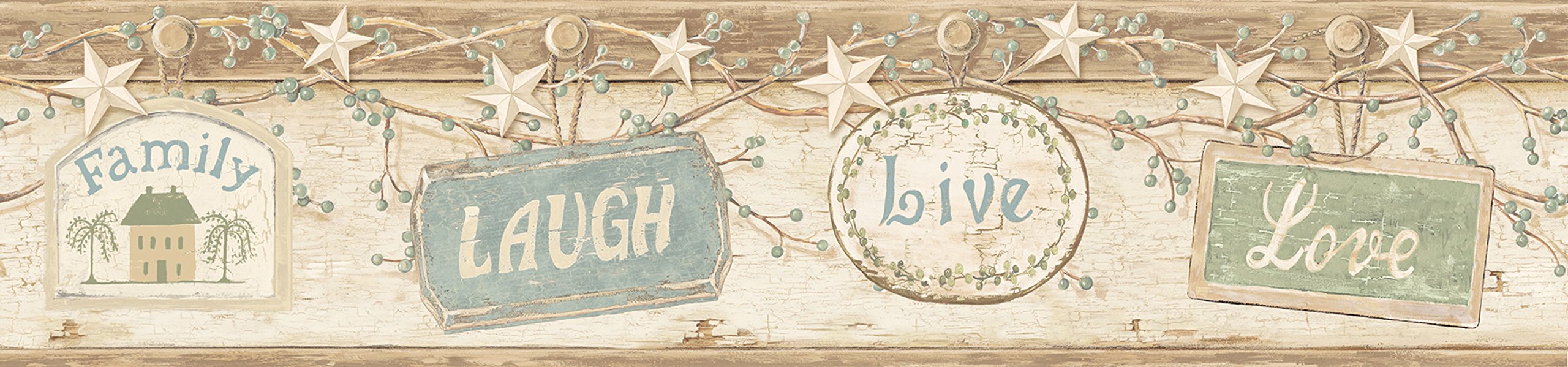 Chesapeake CTR63153B Kinsey Cream Live Laugh Love Wallpaper Border
