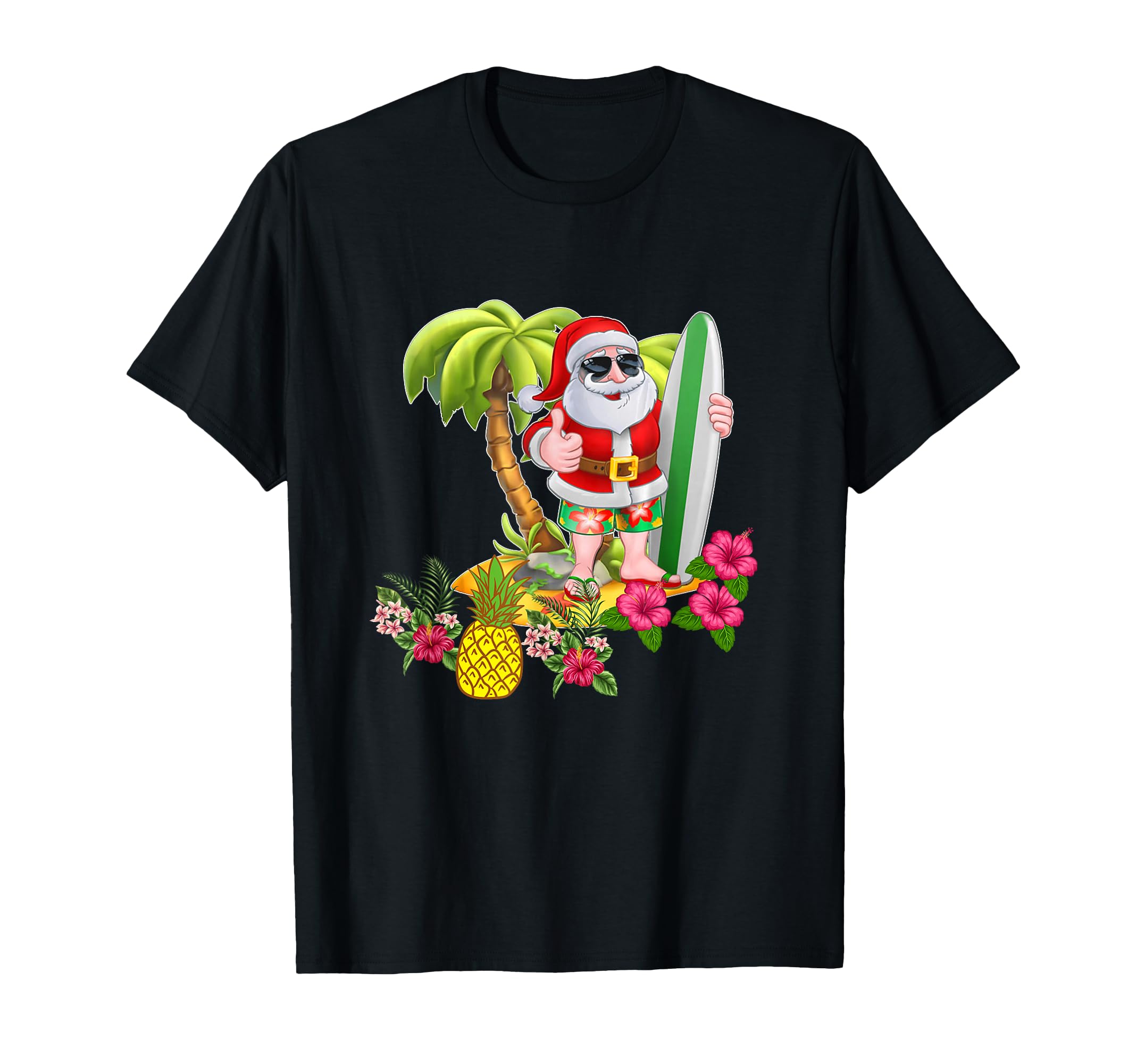 Perfect Xmas gift or X-mas present for Santa lover men, women, kids, boys, girls, youth. Cool t-shirt for Aloha Friday, Hula, Tiki, Luau Party, or Christmas Party in Hawaii and summer vacation. Christmas in July Santa Surf Funny Hawaiian Surfing Tshirt Gifts. Mele Kalikimaka vintage shirt showing Santa Claus on a surfboard wearing sunglasses and flower print short. tropical summer shirts for surfers to wear at Hawaii State beaches Lightweight, Classic fit, Double-needle sleeve and bottom hem