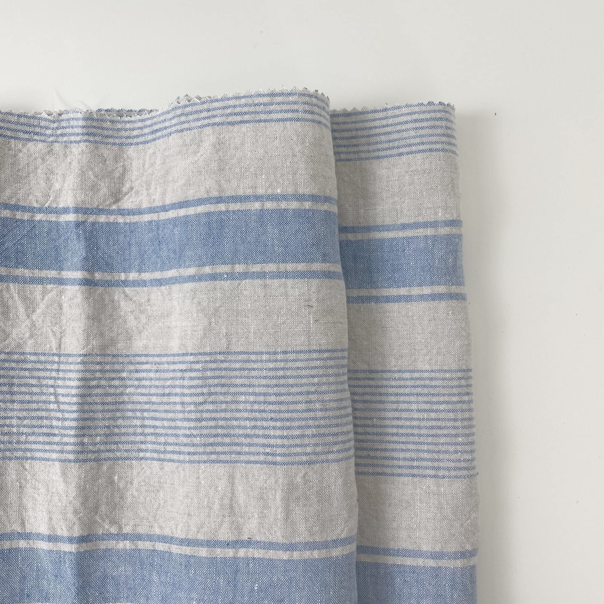PREMIUM QUALITY LINEN FABRIC: Our Classic Blue Pure Linen Stripe Fabric is made of 100% linen, ensuring a high-quality, breathable, and durable material perfect for all your home decor and crafting needs. PRE-WASHED FOR SOFTNESS: This fabric is pre-washed, offering a soft and crisp touch, ready to be used straight away on your DIY projects or sewing works, with the added benefit of reduced shrinking when washed later. STYLISH AND VERSATILE DESIGN: The yarn dyed stripe pattern adds a timeless and sophisticated touch to any room, making it an ideal fabric choice for curtains, upholstery, cushions, table linens, and more. MEDIUM WEIGHT: At 222 g/sqm or 6.5 oz per square yard, our linen fabric is medium in thickness and offers a width of 53in (135cm), giving you ample material to work with and ease of handling. ECO-FRIENDLY AND NATURAL: Experience the genuine feel and quality of natural linen, featuring excellent breathability and moisture-wicking properties, perfect for maintaining a comfortable atmosphere in your indoor spaces. CONVENIENT YARD PRICING: Our price is per yard, and when you order 3 yards, you'll receive a seamless shipment of 3 continuous yards for your crafting convenience. Elevate your home decor and crafting projects with our Classic Blue Pure Linen Stripe Fabric. This premium-quality textile boasts timeless elegance and superior durability. Crafted from pure linen, it offers exceptional breathability, ensuring comfort in every use. Whether you're creating stylish home accents or crafting one-of-a-kind pieces, this fabric's versatile nature provides endless possibilities. Add a touch of sophistication to your creations with the classic blue stripe pattern. Experience the finest in quality and design for your home decor and crafting endeavors.