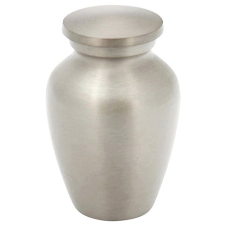 Made for Remembrance: Keepsake urns are a scaled-down version of standard adult urns & designed to hold just a small amount of ashes. They can be purchased in sets to share with significant people in your loved one’s life. These mini urns are also perfect to be placed on a bedside table, shelf, or mantel as a reminder of your loved one. You can also use these small urns to transport a small amount of ashes to a scattering site with meaning. Dimensions: Keepsake sized cremation urn: 2.75" H x 1.75" D, with a capacity to hold approximately 3.5 Tablespoons of ashes. Timeless Design: Honor your loved one and keep your memories close with this classic design. This small keepsake cremation urn is finished in pewter and features a simple style. Made out of Brass: This decorative urn is made of brass, a strong material that lends itself to the longevity needed of this vessel. Brass cremation urns are a traditional choice, while still offering a distinctive design to honor your loved one. This brass cremation urn has a threaded top lid for secure closure. Family-Owned: Silverlight Urns is a family-owned business that treats you like family. We care about our customers, and we want you to be 100% satisfied with your purchase. We know that buying a memorial item is difficult -- and so important to get right. Silverlight Urns strives to provide peace of mind by offering only quality products that meet or exceed your expectations. You can trust that our team will ship your order on time and handle it with care -- in honor of your loved one. For sharing ashes among family members or keeping a small memorial, the Classic Pewter Keepsake Urn for Ashes holds a small amount of ashes. Keepsake urns can be used to share a loved one's ashes among several family members. Others use a keepsake urn to hold a small amount of ashes nearby such as on a bedside table or shelf. This is a small cremation urn that holds 3.5 cubic inches of ashes, which is equal to approximately 3.5 tablespoons.