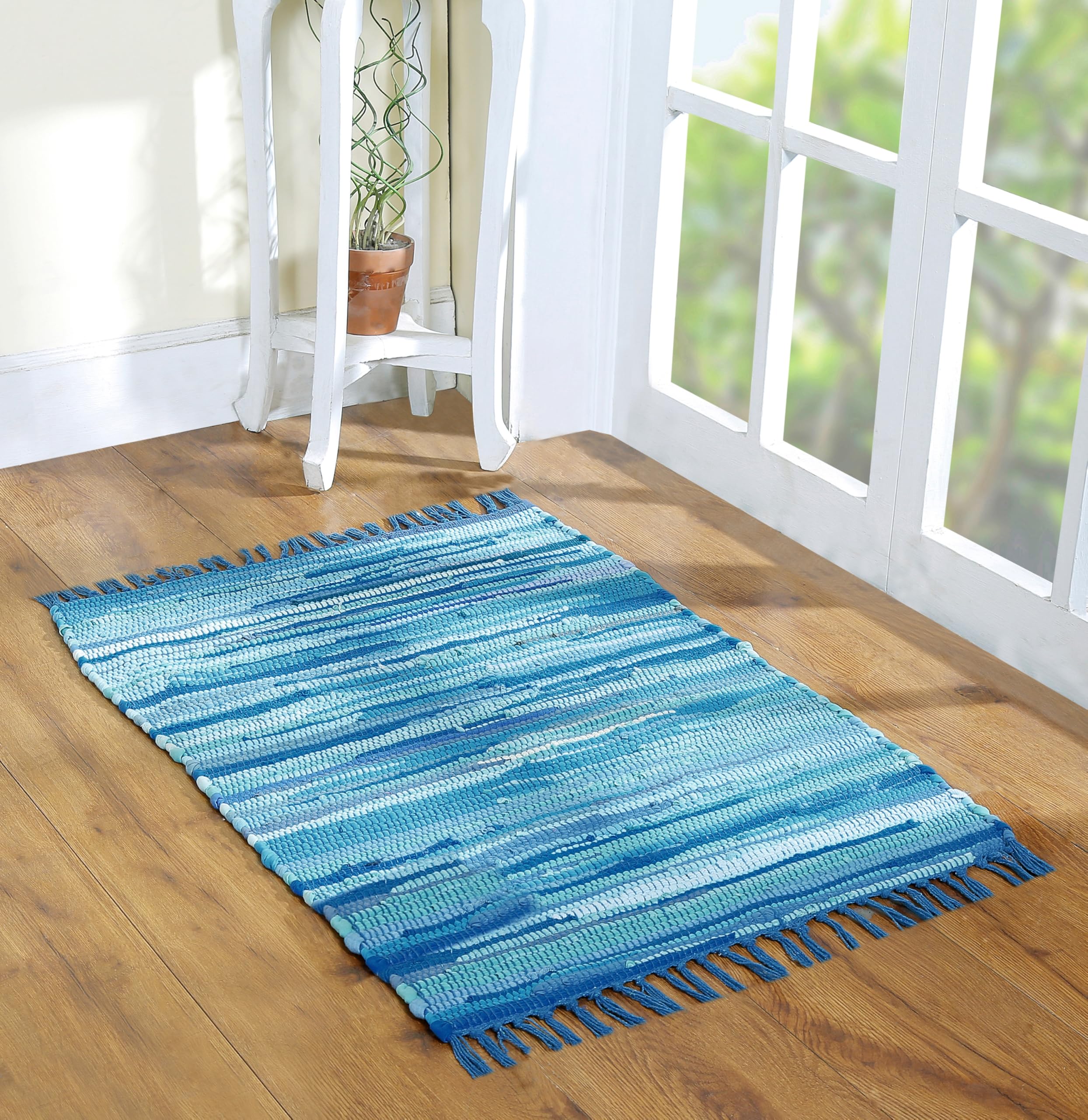 PREMIUM QUALITY: Crafted from 100% cotton fabric, this 2x3' Chindi rug is hand woven to perfection. It features a reversible design, which makes it highly durable and long-lasting. ATTRACTIVE DESIGN: The multicolor design of the rug is sure to add an element of sophistication and style to any room in your home. It comes with tassels that give it a unique look and feel. EASY TO MAINTAIN: This Chindi rug is easy to clean and maintain, as it can be machine washed without any hassle. It also helps prevent slipping on hardwood floors or other surfaces for added safety. PERFECT FOR ANY ROOM: This versatile 2x3' area rug can be used in any room in your home - from living rooms, bedrooms, kitchens, entryways, dining rooms or even bathrooms! AFFORDABLE & VERSATILE: Our Chindi rugs are affordable yet stylish - perfect for adding a touch of luxury to your home without breaking the bank! They also make great gifts for friends and family alike! Our 100% Cotton Rag Rug is perfect for any area in your home. Durable and easy to clean, this 2x3' rug is the perfect size for entryways, kitchens or living rooms. With a unique design and vibrant colors, it will add a touch of style to any space. This hand-woven reversible rug easy to clean and maintain, as it can be machine washed without any hassle. The tassels make it even more stylish while adding texture - making it the perfect addition to your home decor!