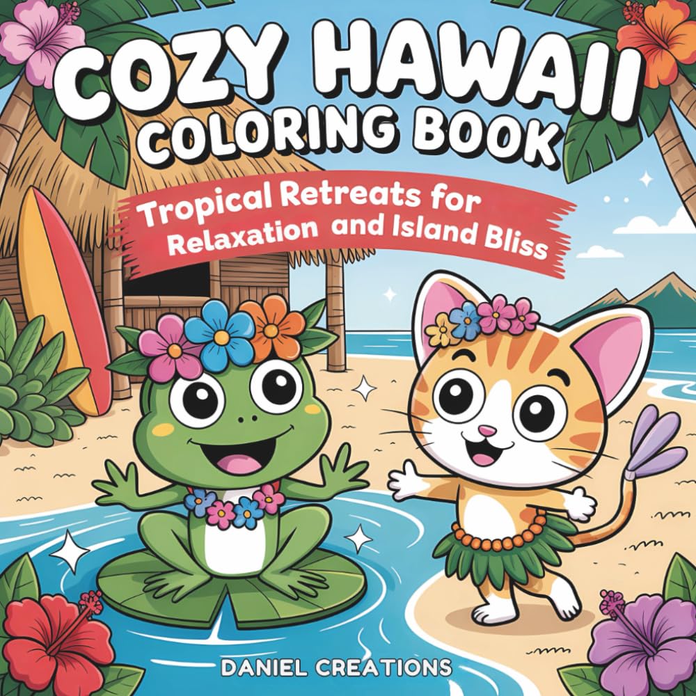Escape to paradise with Cozy Hawaii Coloring Book: Tropical Retreats for Relaxation and Island Bliss! Perfect for adults and teens dreaming of Hawaiian serenity, this enchanting coloring book features 40 soothing designs inspired by the islands lush beauty, inviting you to unwind and embrace tropical tranquility. Ideal for a relaxing, creative getaway without leaving home! 🌴🎨 40 Tropical Designs🌊 : Full-page, single-sided illustrations on crisp white paper, perfect for framing or gifting. - Island-Inspired Variety 🍍: Color vibrant scenes of swaying palms, pristine beaches, exotic flowers, serene waterfalls, and cozy island retreats. - Pure Relaxation 🧘🏻♀️ : Melt away stress as you immerse yourself in these blissful, mindfulness-boosting designs. - Hand-Drawn Aloha✍🏻 : Crafted by real artists, not AI, for an authentic, heartwarming creative experience. - Shop with Confidence✅ : High-quality production ensures a delightful and serene coloring journey. Perfect for Hawaii lovers or anyone seeking a peaceful, island-vibe escape. Click "Buy now" on Amazon and start your tropical coloring retreat today!🎉🌟