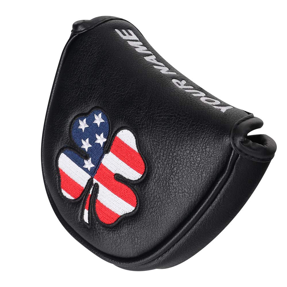 【Fits Golf Mallet Putter Club】US flag golf mallet putter headcover with a size of 5.5" x 4.2" x 1". It fits most brands like Odyssey, Taylormade, PXG, Cobra, etc. Please make sure your club size can fit it before purchase. 【High Quality Material】Using well-made pu leather material to offer your golf mallet putter club a great protection. Thick pu leather outside, water-proof and stain-resistant; soft thick velboa linning inside, prevent mallet putter head from collision. 【Strong Magnetic Closure】With strong magnetic closure builting to firm fit the golf club mallet putter, no worry about loose or fall off. Meanwhile, very easy to take on and take off. 【Customize Service】A unique custom service for you, you can custom your name or specific word/phrase you want, also you can choose font and color, to make your exclusive mallet putter cover, we will try our best to meet your needs. 【Amazing Design】The golf club mallet putter headcover with patriotic US flag clover design, stars and stripes, a novelty design, which is a patriot golfer must have. "Feature: Nice pu leather material made, strong magnetic closure can be closed tightly, the clubs can get effectively protection. Convenient to use, easy to take on and take off and not to fall off. Novelty US flag clover pattern design is a good choice for patriot golfer. Unique custom service can make you get the better experience. 365 days quality warranty, any question please feel free to contact us 24/7. Specification: 1. Brand: Craftsman Golf 2. Material: Pu Leather 3. Size: 5.5"" x 4.2"" x 1"" 4. Color: Black & Red & Blue & White"