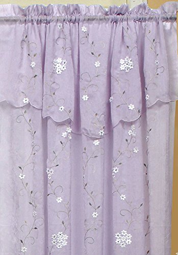 Creative Linens Daisy Embroidered Floral Window Curtain Panel 50x84 in 6 Colors - Gold, Ivory, Lavender, Mint Green, Pink, Taupe One Piece (Lavender)