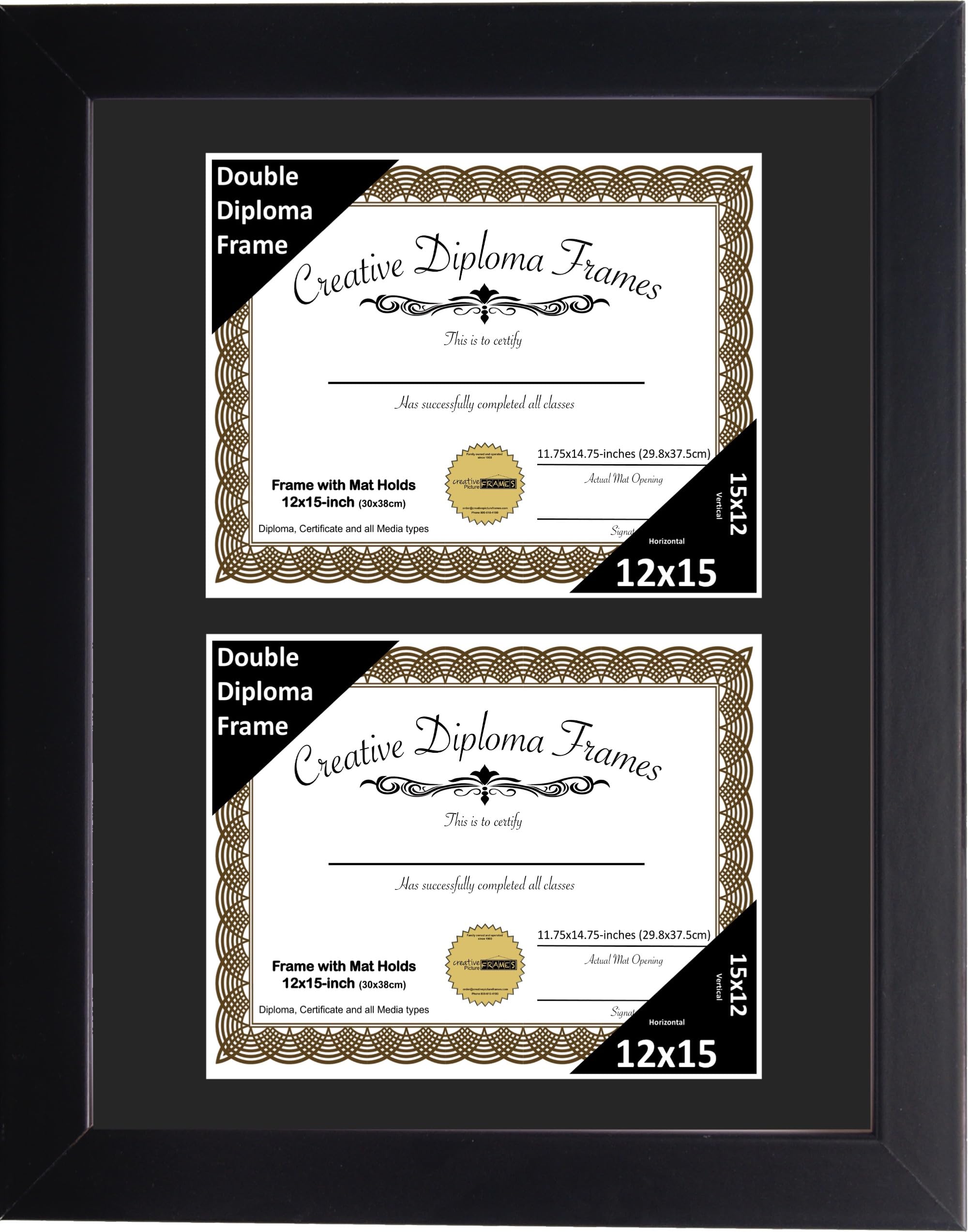 STYLE- Classic Black modern wall display holds two 12x15 diploma's, certificates, photographs, or any media type in our 20x28 photo frame with installed sawtooth hangers and wire kit MATTING- Black with white core, acid-free, featuring two openings. Use a small piece of tape placed at the center of your document or artwork to attach it to the back of the mat opening. The opening is cut 1/8 inch smaller than your document to prevent your diploma from touching the glass. When closing your frame with the corrugated backing, this material will further secure your document in place. MATERIALS- Classic Black 1.25-inch American made eco-friendly mdf molding, crystal clear acrylic face, acid free matting, chipboard and corrugated backing with installed wall hanger and wire kit DIMENSIONS- This Frame is designed to hold two 12x15 inch documents or photographs, The overall outside dimmensions are approximately 20x28-inchs GUARANTEE- Manufactureres of Fine Quality Picture Frames - Reach out to us here on Amazon for your custom request - Proudly Made in America with our 100% Satisfaction Guarantee Creative Picture Frames has a rich history rooted in craftsmanship and innovation. The journey began in 1903 when Mr. Harris established the Reliance Picture Frame Company in Manhattan. By 1938, the business expanded into a state-of-the-art factory in Dover, NJ to meet growing demands. In 1964, Peter Harris, Mr. Harris's Grandson, launched Helrick’s Frames, continuing the family tradition of quality and creativity.