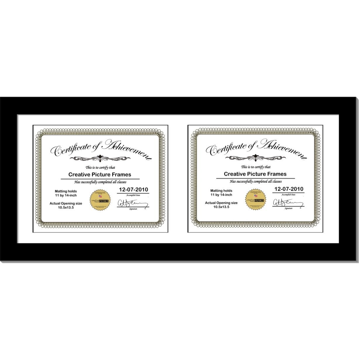 STYLE- Sleek Modern Black 14x30-inch frame displays 2- 11x14-inch media with matting and installed wall hanger MATTING- Holds 2- 11x14-inch media
