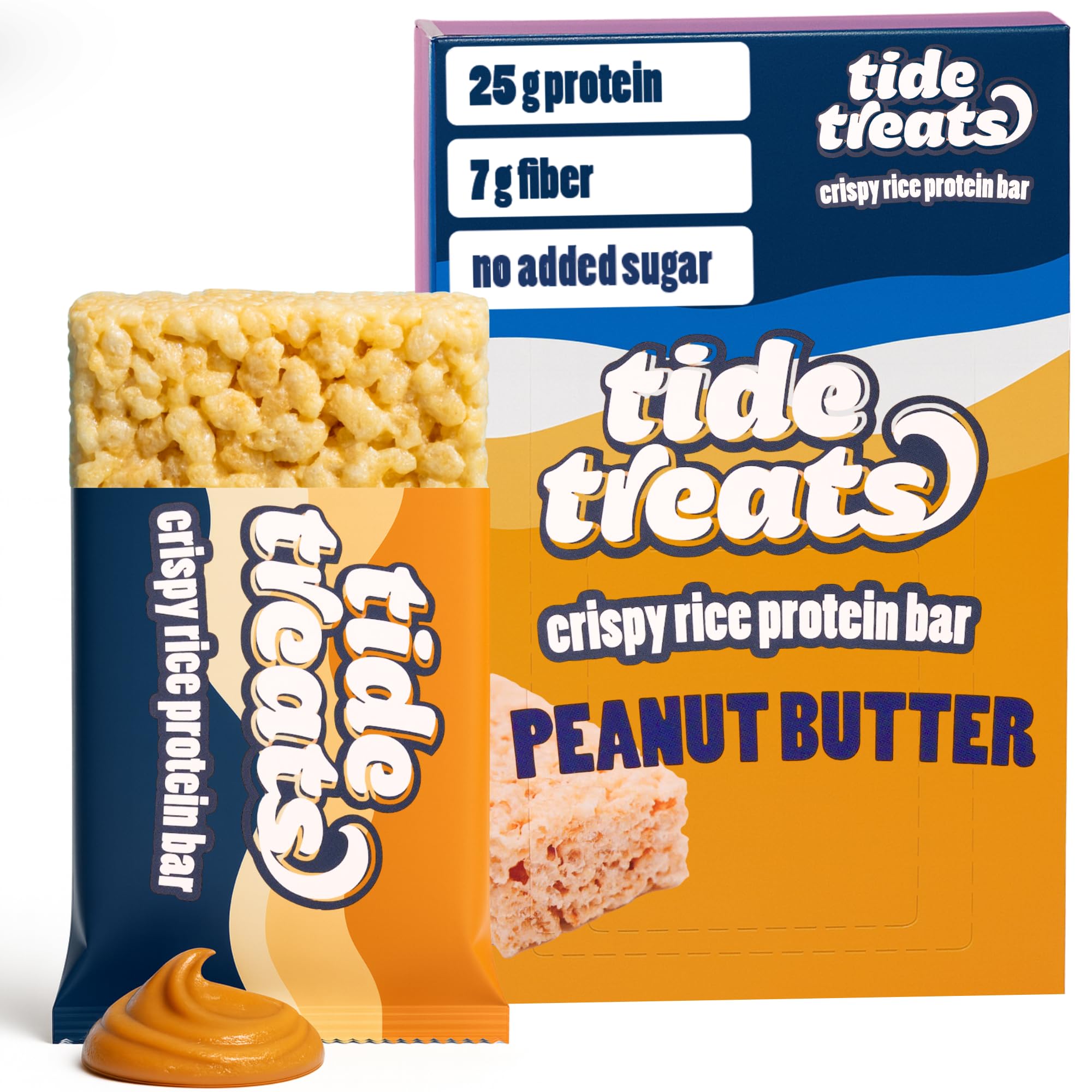 💪 HIGH PROTEIN CRISPY RICE - Packs 25g of protein and crunch to crush sweet cravings while fueling muscles pre or post workout while keeping hunger in check. 🚫 ZERO ADDED SUGAR - Enjoy dessert-like sweetness without the crash so you stay energized and focused at work, in class, or on the trail. 🌾 SATISFYING FIBER – 7 g prebiotic fiber keeps you full longer, aiding healthy digestion and steady energy so every crispy, high-protein snack fuels focus from desk to dumbbells. 🎒 GRAB-AND-GO CONVENIENCE - 8 individually wrapped bars slide into gym bags, backpacks or desk drawers, keeping fuel always within reach. 🥜 PEANUT BUTTER FLAVOR - Grown-up twist on a childhood crispy treat delivers creamy peanut butter taste and satisfying crunch for guilt-free snacking anytime. Tide Treats Crispy Rice Protein Bars are what happens when your favorite childhood treat grows up, and ditches the junk. Each bar packs 25g of protein and 7g of fiber, so you’ll feel full, satisfied, and ready for whatever’s next — whether it’s your next workout, your next meeting, or your next meltdown (no judgment).