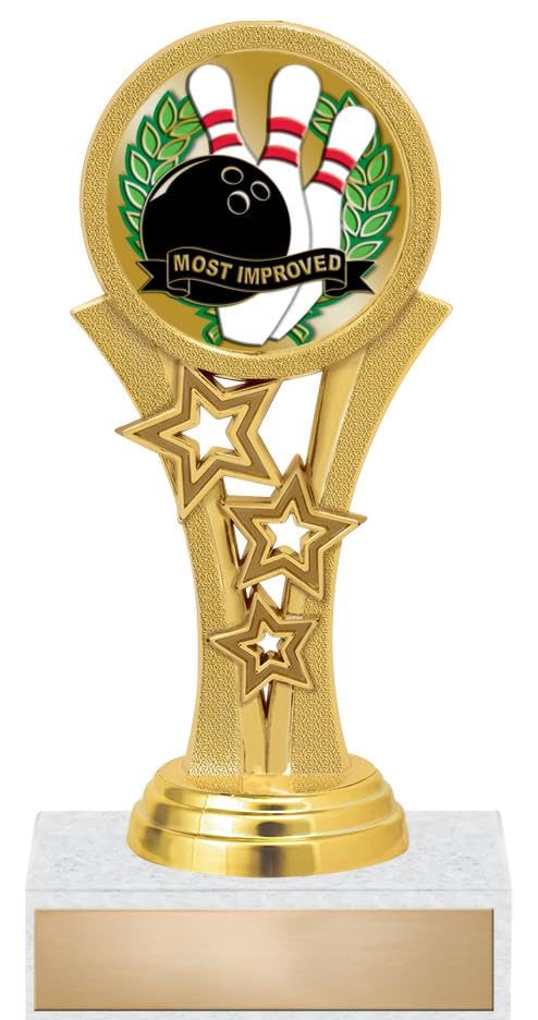 BOWLING TROPHY AWARDS: Each Personalized Bowling Trophy Is 5.5"H And Features A White Marble Base Perfect For Showing Off Purposes. CUSTOM BOWLING TROPHIES: Customize Now With Your Own Personal Text Engraving! Our Engraving Experts Personalize Each Bowling Trophy With Care. Includes Up To 3 Lines Of Custom Engraving. HIGH QUALITY DESIGN: These Customized Bowling Award Trophies Are Great For Bowling Awards, Kids Bowling Trophies, Youth Bowling Trophy, Engraved Bowling Trophies, Bowling Recognition Trophies And More. Crown's Exclusive Starbeam Insert Trophy Features Gold Stars Accents. Celebrate Your Winners And Achievers With Crown's Custom Bowling Trophy. Free Engraving Included!