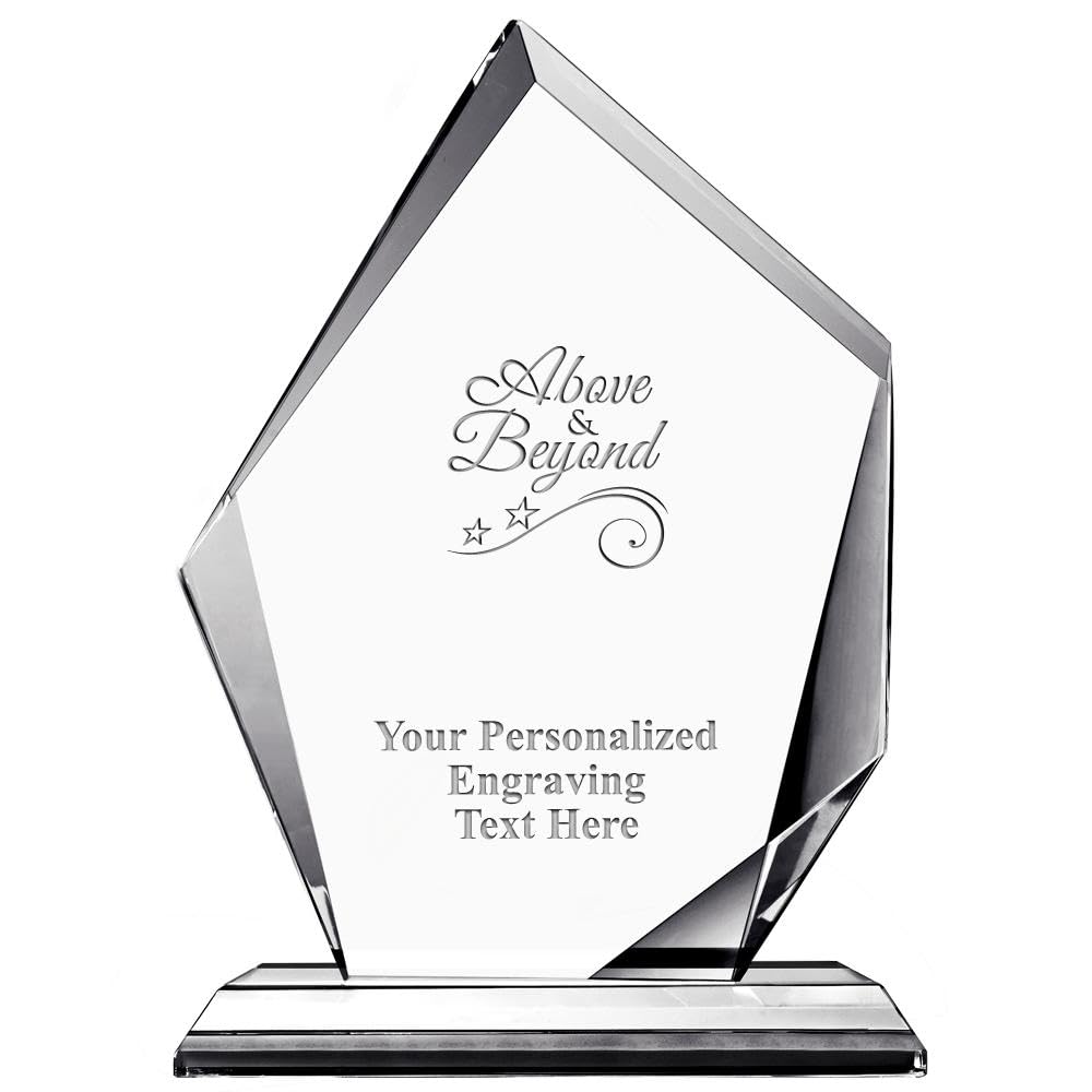 As America's Largest Awards Manufacturer And With Over 40 Years Of Experience, Crown Awards Guarantees Quality And Service. This Custom Crystal Award Is The Perfect Way To Honor Your Recipient! CUSTOM CRYSTAL AWARD: This Crystal Trophy Stands At 10" H. ENGRAVED CRYSTAL TROPHY: Customize Now With Your Own Text Engraving! Our Engraving Experts Design Each Above And Beyond Award With Care. HIGH QUALITY DESIGN: Crafted In High Quality Glass, This Personalized Above And Beyond Award Is Perfect For Your Recipient! As America's Largest Awards Manufacturer And With Over 40 Years Of Experience, Crown Awards Guarantees Quality And Service. This Custom Crystal Award Is The Perfect Way To Honor Your Recipient!