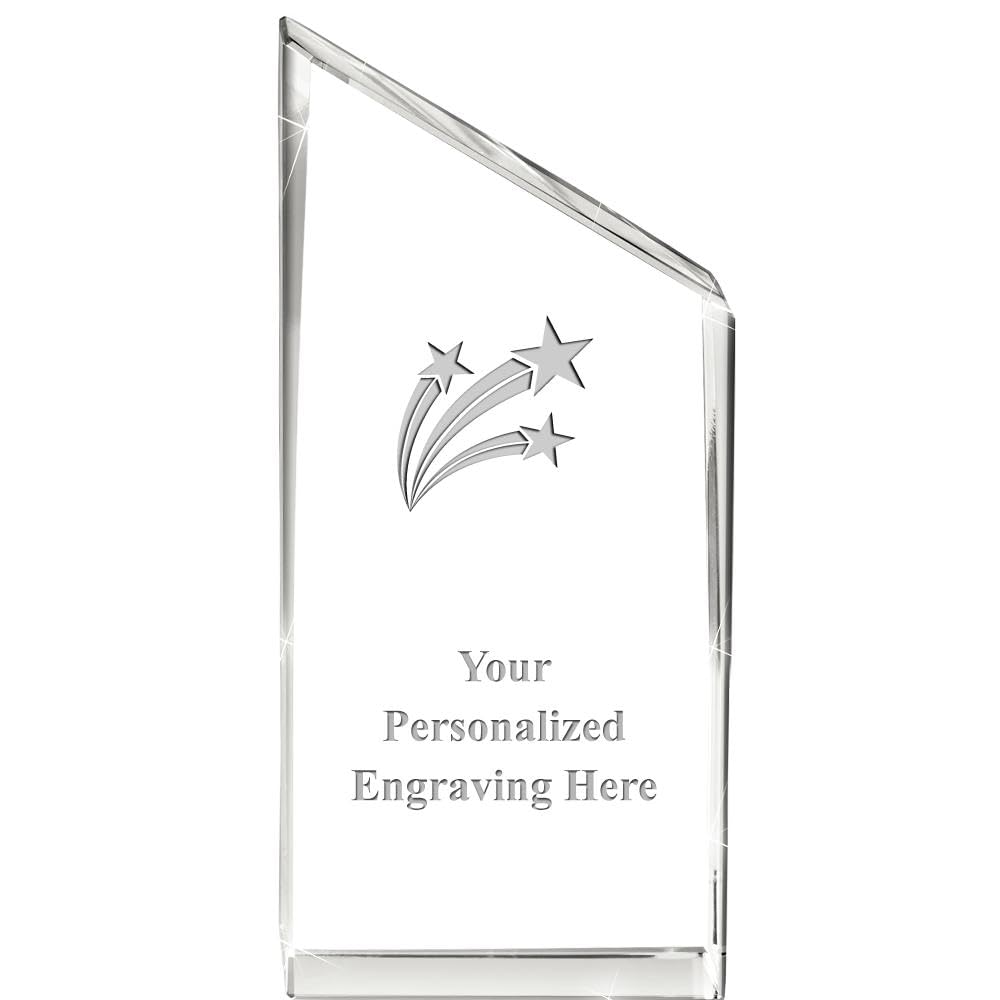 As America's Largest Awards Manufacturer And With Over 40 Years Of Experience, Crown Awards Guarantees Quality And Service. This Custom Crystal Award Is The Perfect Way To Honor Your Recipient! Crown's Empire Crystal Features Angled Edging On Top, Making This The Perfect Presentation Award. CUSTOM CRYSTAL AWARD: This Crystal Trophy Stands At 4"H. ENGRAVED CRYSTAL TROPHY: Customize Now With Your Own Text Engraving! Our Engraving Experts Design Each Three Stars Award With Care. HIGH QUALITY DESIGN: Crafted In High Quality Glass, This Personalized Three Stars Award Is Perfect For Your Recipient! As America's Largest Awards Manufacturer And With Over 40 Years Of Experience, Crown Awards Guarantees Quality And Service. This Custom Crystal Award Is The Perfect Way To Honor Your Recipient!