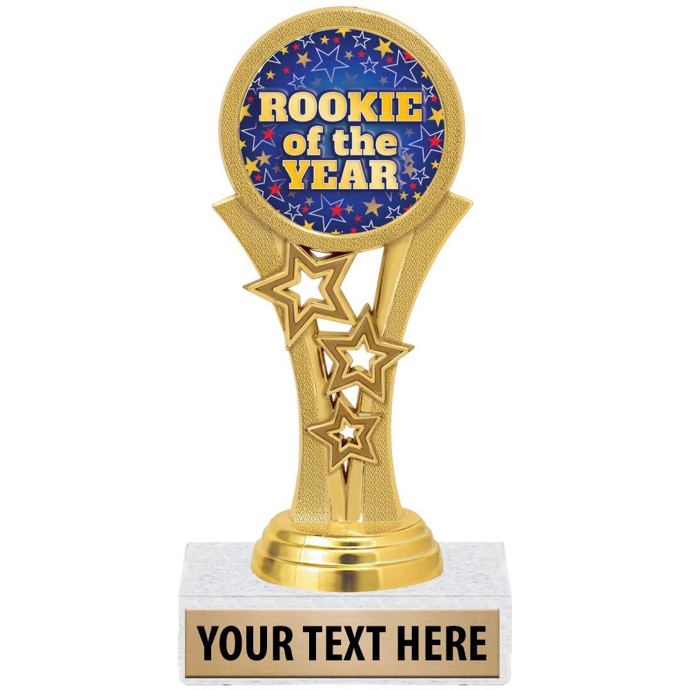 ROOKIE OF THE YEAR TROPHY AWARDS: Each Personalized Rookie Of The Year Trophy Is 5.5"H And Features A White Marble Base Perfect For Showing Off Purposes. CUSTOM ROOKIE OF THE YEAR TROPHIES: Customize Now With Your Own Personal Text Engraving! Our Engraving Experts Personalize Each Rookie Of The Year Trophy With Care. Includes Up To 3 Lines Of Custom Engraving. HIGH QUALITY DESIGN: These Customized Rookie Of The Year Award Trophies Are Great For Rookie Of The Year Awards, Kids Rookie Of The Year Trophies, Youth Rookie Of The Year Trophy, Engraved Rookie Of The Year Trophies, Rookie Of The Year Recognition Trophies And More. Crown's Exclusive Starbeam Insert Trophy Features Gold Stars Accents. Celebrate Your Winners And Achievers With Crown's Custom Rookie Of The Year Trophy. Free Engraving Included!