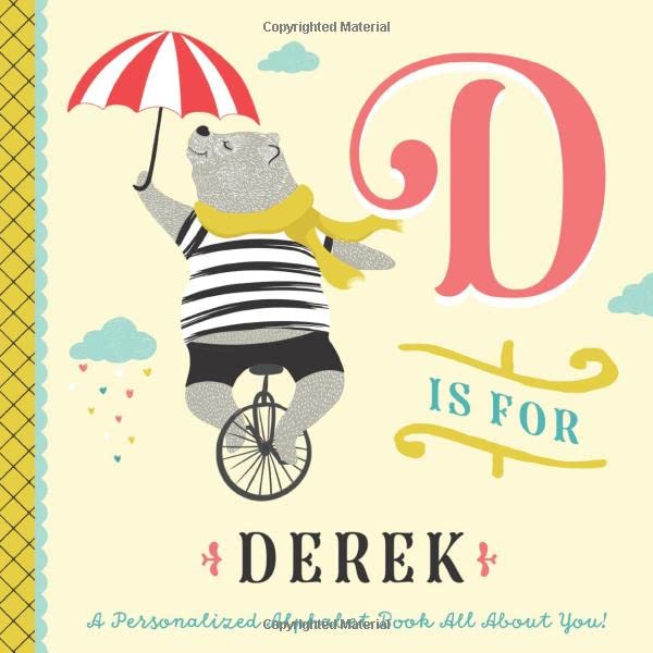 A Personalized Alphabet Book with Derek’s Name! A is for amazing, that’s Derek in every way! B is for the special way you brighten up each day. C is for your courage. You don’t fear what to do. D is for your daring. You always carry through. Derek is your pride and joy—and now there’s a personalized children’s book with Derek’s name to celebrate all the wonderful qualities you see! From letters A to Z, your child will hear all about their kindness, their joy, their talents, and how they’re perfect just being themselves. It’s a heartwarming way to build self-esteem and share your deepest feelings as a parent or grandparent. Beautifully Designed and Produced Vivid, colorful, timeless artwork - Personalized inside and out with Derek’s name - A personal message included on the first page plus a place to sign your name - Matte-finish softcover - 8.5” x 8.5” in size - Acid-free paper A Cheap Personalized Children’s Book, But With Top-Notch Quality Most personalized children’s books sell for $25 or more, but this adorable personalized children’s book for ages 1-3 is only a fraction of the cost. Li’l Llama Custom Kids Books offers cheap personalized kids books without sacrificing quality art and story. The illustrations are by talented illustrators from all over the world and the story is written by a best-selling children’s author. It’s beautiful, top-tier quality without the hefty price tag. The Perfect Personalized Gift for Derek A personalized children’s book birthday gift - A custom baby shower gift - A meaningful Christmas gift with an uplifting message - A personalized gift with Derek’s name
