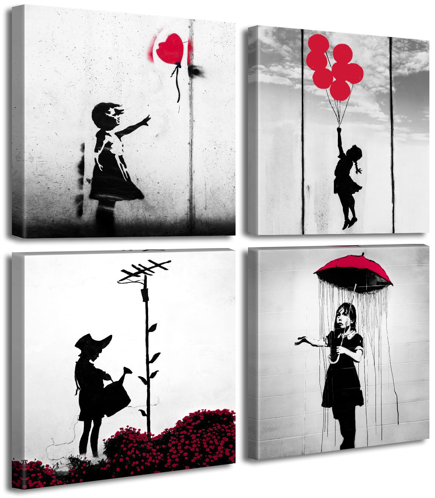 Black and White Wall Art:Above Bed Wall Decor for Bedroom,living room wall art,wall murals,decoration artwork suitable for decoration on white,blue,yellow,bohemian style walls,perfect for hanging on the bed/window/sofa Matching,The beautiful picture make your room more Nordic decoration style. Full of Hope Artwork Decor:laundry room decoration and accessories,farm bathroom decoration wall frame painting,suitable for living room house decoration.Perfect apartment wall decoration,suitable for any room you want to light up,such as living room,corridor,office,meeting room,coffee shop,sea view room or villa room,perfectly matching any space. Birthday Gift or Other Important Days:Bring the beautiful view to your children,friends or loved ones!It can be used in any room,The real picture makes you feel like you're in it.It's the perfect gift for Thanksgiving, or an anniversary.For example,the perfect gift for men's or women's 1st,7th or 15th anniversary day. High Quality and Convenience Wall Decor:The canvas wall art quality guaranteed,it has perfect size and easy to put up,and it is rich color and light weight,it alos has excellent water resistance ,but please be careful to avoid long-term exposure to strong sunlight and oil stains.It is easy to clean,when it gets dirty, you can wipe it with a damp cloth. 4 Pieces Wall Art:12" W x 12" H(30cmx30cmx4pcs) suitable for living room decoration,canvas professional stretch wrap and back of the built-in wood frame,with a black hook on the back of each panel that has been mounted. Size:12" W x 12" H (30cmx30cmx4pcs).Introduction:1. It is canvas prints works,not hand-painted painting,there is not difference in the product itself,but colors may appear slightly different to each user due to individual monitors.2. Each panel of canvas print already stretched on solid wooden frames,and comes with hook attached.Great Wall Art for Room:Perfect choice for canvas paintings wall art:Such as wall decor for bedroom,wall art for living room,boho wall decor,dorm wall decor,kitchen pictures wall decor,rustic wall decor,abstract wall art,office wall decor,dining room wall decor,laundry room wall decor,bedroom wall art,wall art for bathrooms,home wall decor,modern wall art,kid's room wall decor,wall art fashion,wall art,wall decorations for dorm room,farmhouse wall art,framed wall art,wall decor teen bedroom,college room wall decor,bathroom canvas wall art,fashion wall art,travel wall decor,farmhouse bathroom wall decor, country wall decor,flower decor for wall,canvas art wall decor for living room,botanical wall art,wall decor for office,wall flowers decorations,mancave wall decor,modern prints wall art,college apartment wall decor,guest room,meeting room,hallway, nurseries,coffee house,condo house,hotels,office,business,and other spaces.