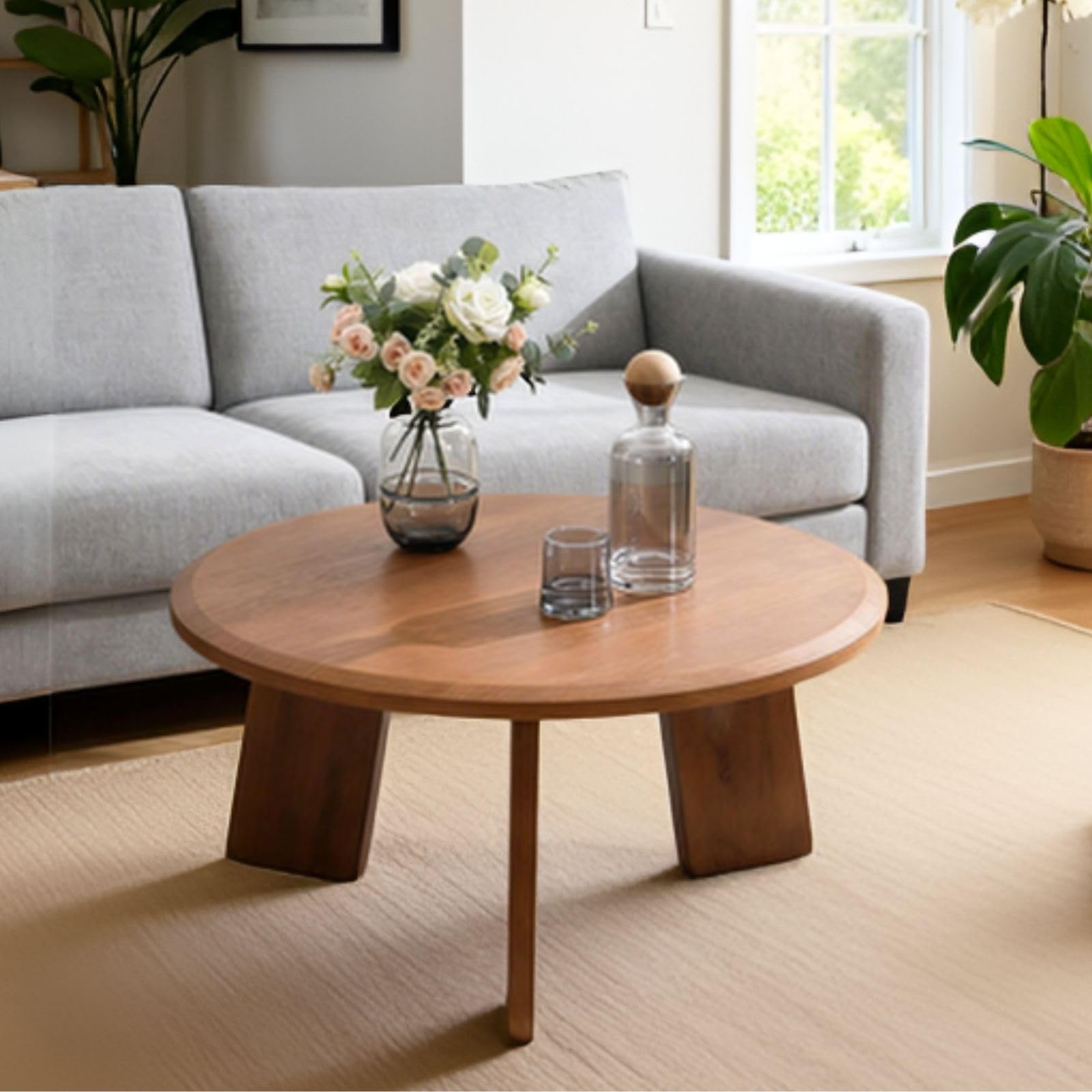 Transform your living space with DM Furniture large round coffee table, a unique piece that seamlessly merges style and practicality. This farmhouse-style coffee table adds tone, texture, and visual interest to your space. Its sleek round tabletop, with a thick and sturdy construction, ensures long-lasting quality and elegance. Built from solid wood for greater durability. Perfect for serving drinks, displaying decorations, or acting as a fantastic accent piece, this table creates a sophisticated atmosphere with its artful design and subtle tones.