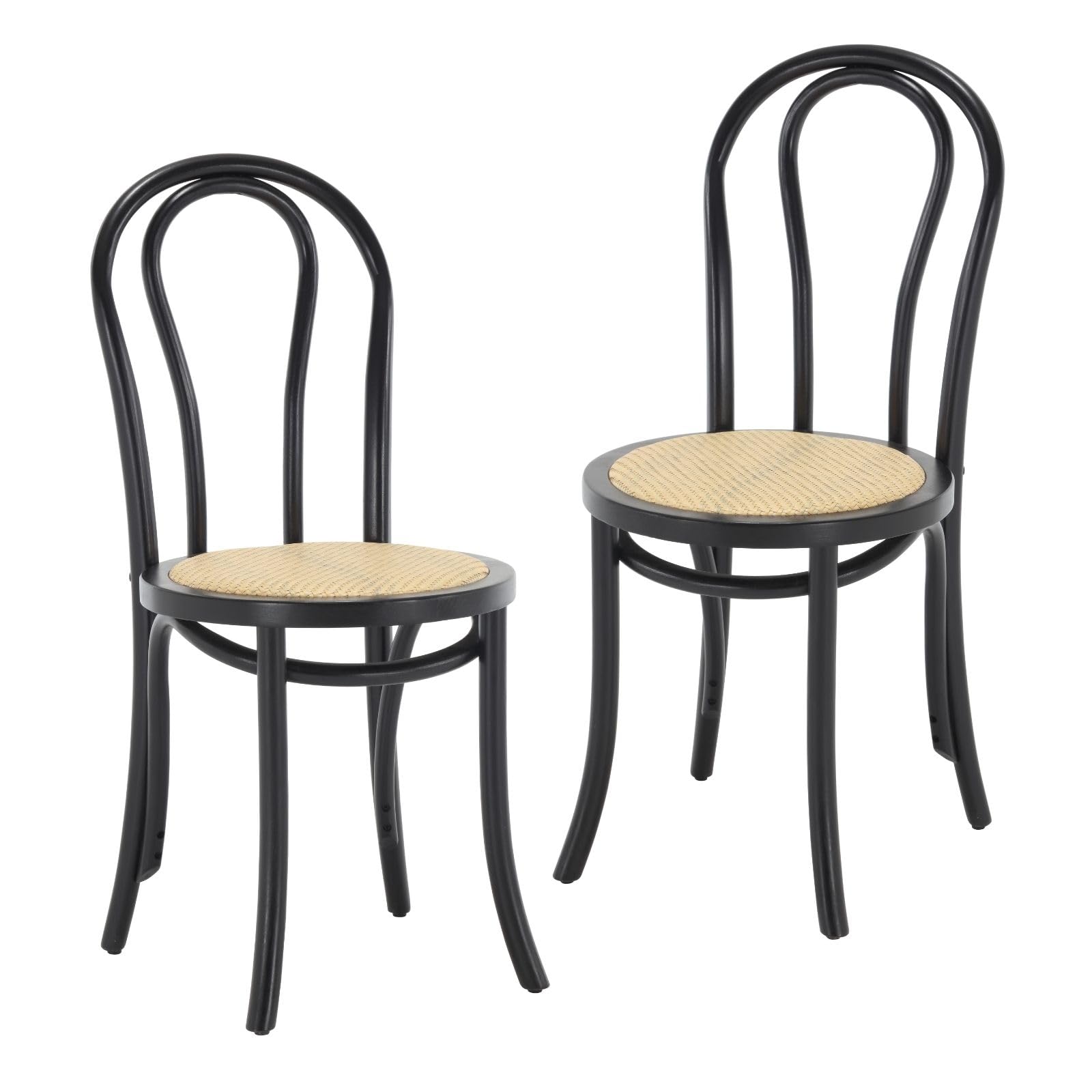 This wood dining chairs has a clean simple clean lines outline, crafted from solid wood. Curved bands This wood dining chairs has a clean simple clean lines outline, crafted from solid wood. Curved bands under the seat echoed the bentwood shape back. The seats are padded with rattan which adds visual texture to the simple lines,also blends farmhouse and modern styles. Warped wood support beam under the seat that also adds a dynamic look. It's a great choice to your dining room, living room or home.