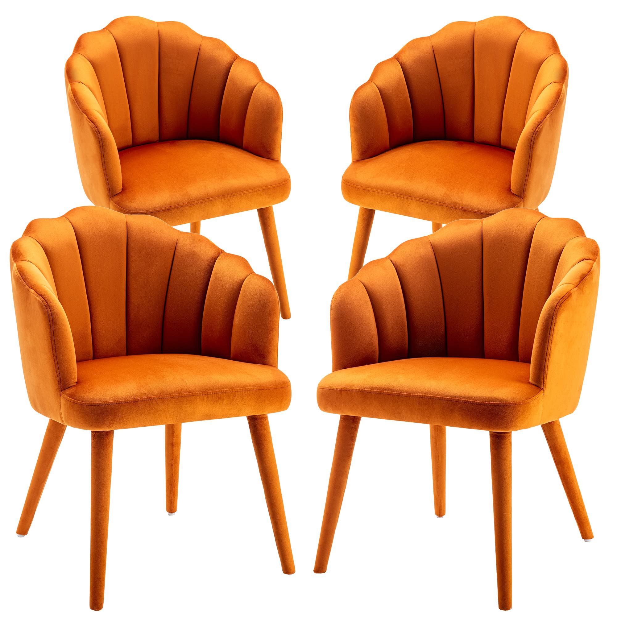 Want to add chic atmosphere to your home? Try this set of 4 chairs. These chairs are made of velvet fabric, sponge, and solid wood. The selected materials are comfortable and durable for a long-time service. Vivid color and stylish chic look is perfect for your dining room, living room, kitchen, a good choice for your house or commercial uses like restaurant, cafe, club and so on. This classic MCM accent chair features a wide curved back and armrest combined with luxious upholstered wood legs. Plenty of padding makes it sturdy and comfortable to use in the dining room or anywhere else extra seating is needed.The gorgeous color and stylish appearance will perfectly match with your house style, and make your house more alive and chic