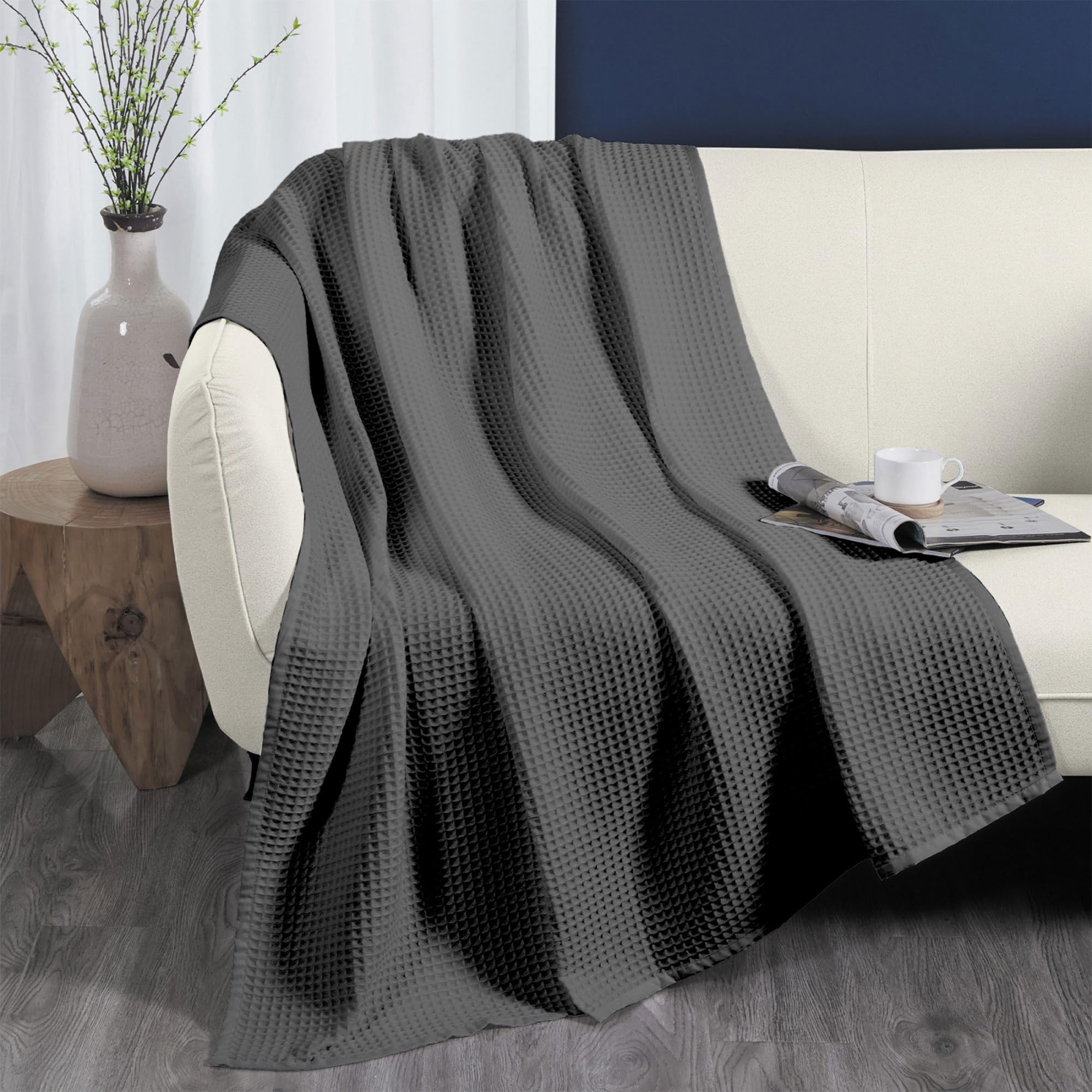 DOZ by SIJO Waffle Bed Blanket, 50% Viscose Derived from Bamboo and 50% Cotton Blend, Lightweight, Ultra Soft, Breathable, Summer Blanket (Storm,