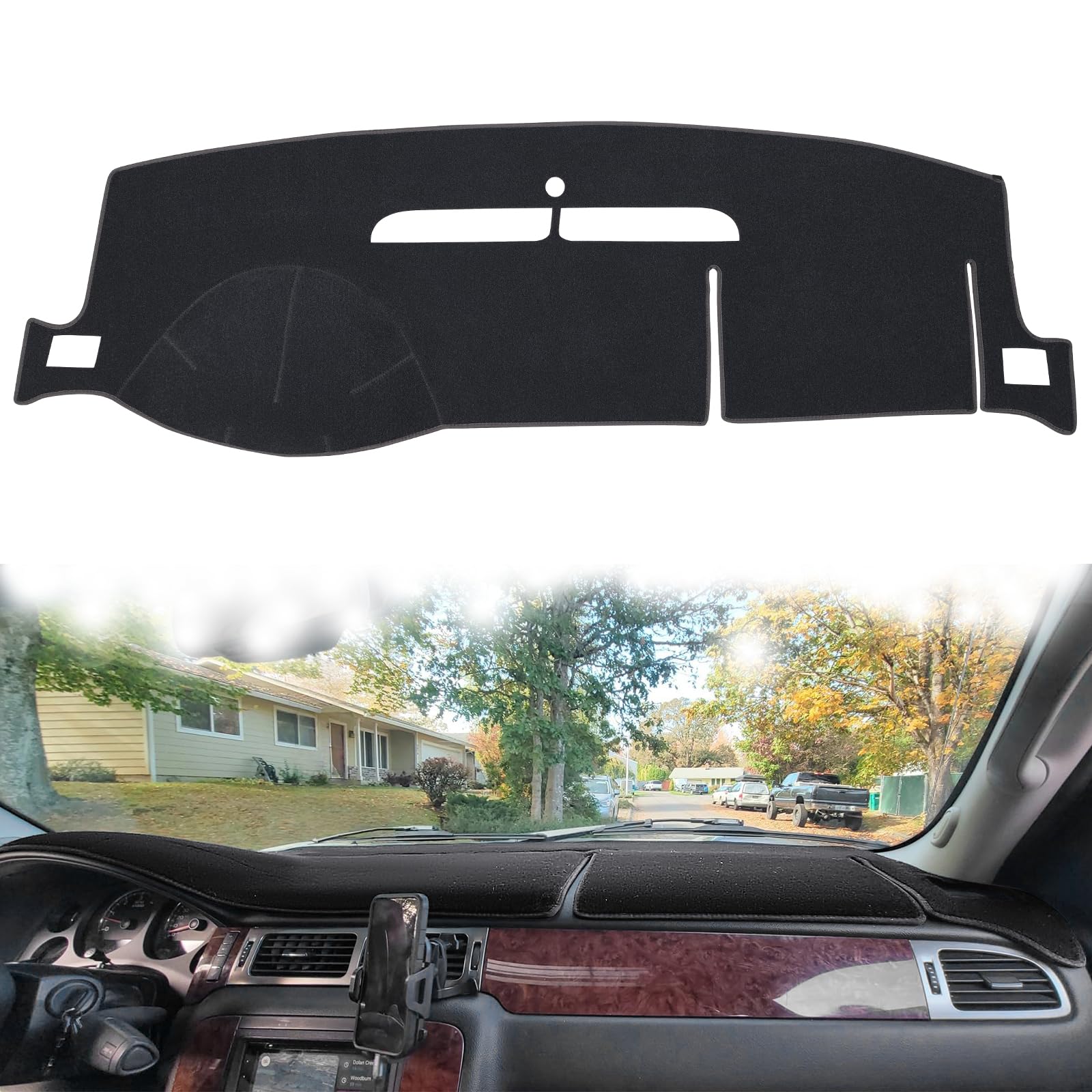 ☀FITMENT: The dash board cover mat for GMC Yukon/XL/Denali 2007-2014, for Chevy Tahoe Avalanche Suburban 2007-2014, for Chevy Silverado 2007-2013 (LTZ ONLY), For GMC Sierra (SLT/Denali ONLY) 2007-2013, Not fits for 07-14 Silverado 2500HD LTZ /3500HD LTZ, Chevy Suburban 2500 ☀SUPER PROTECTION: The dash mat protects the dashboard surface from sun's radiation which can reduce car cracks, warping and overheating, reducing hazardous windshield glare. It can cover blemishes and imperfections of old dashboards. Whether it is a hot summer or a cold winter, you can feel the right temperature when entering the vehicle ☀SAFETY: The reflection of sunshine and the light from the opposite vehicle is easy to cause traffic accidents. Our dash carpet will reduce such reflection, improve your driving confidence and greatly protect for your car. Also keep things from sliding on your car dash ☀CUSTOM DESIGH: Laser measured carpet dash cover custom fit to your truck, your A/C vents, air bags, and sensors would not covered up ☀EASY INSTALLATION: Car dash protector cover just need 0mins to install without any tools, velcro tabs help in place to eliminate slippage dashboard cover