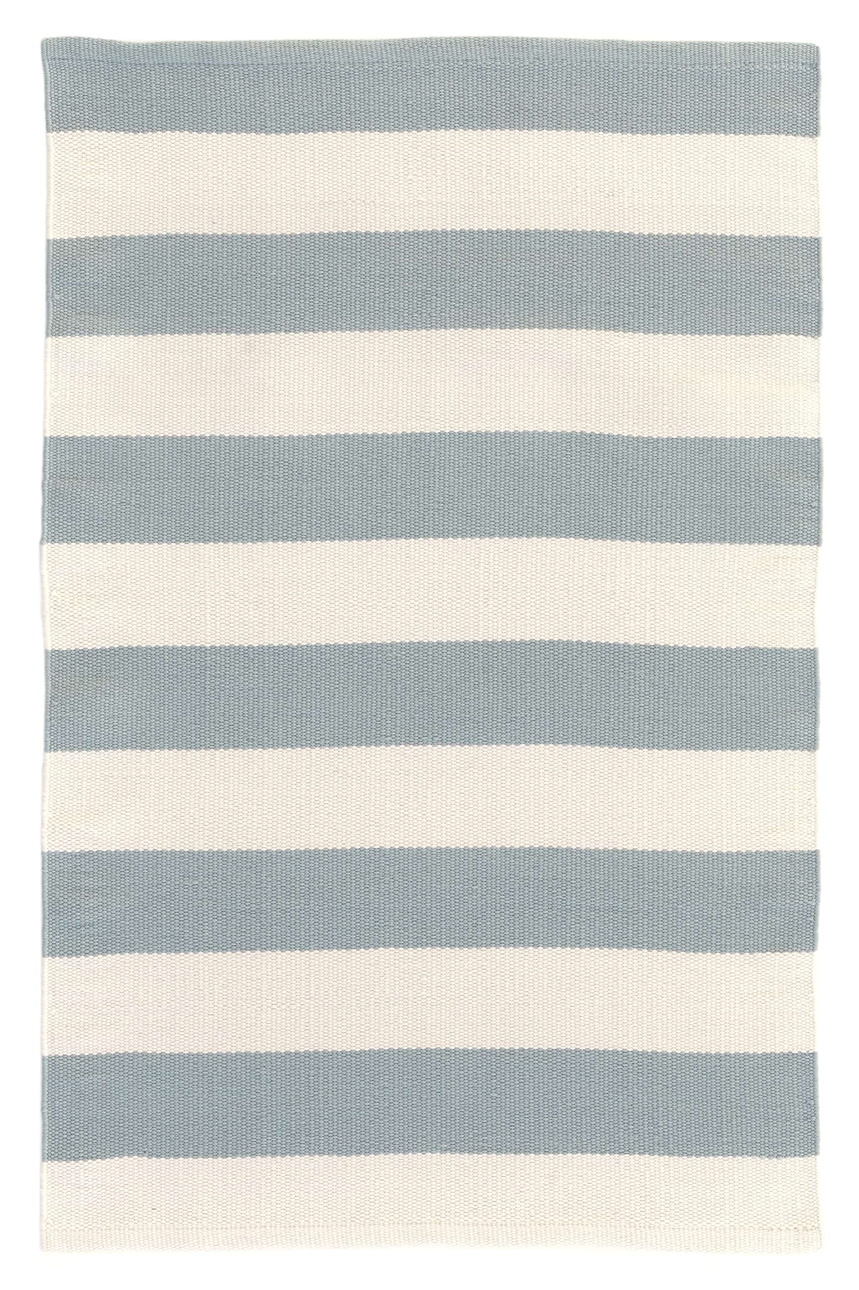CATAMARAN STRIPE DESIGN: A rug for all seasons. Made of superheroic polypropylene, our indoor/outdoor area rugs are terrific for high-traffic areas. Washable, scrubbable, bleachable, and UV-treated for outdoor use, this collection of woven rugs can stand up to all that you dish out. FEATURES & BENEFITS: Ultra-durable construction, water-resistant, and UV-treated for fade resistance; lightweight; often reversible; washable, scrubbable, and bleachable. WHERE TO USE: A rug for all seasons! Terrific for high-traffic areas; kids' rooms; staircases; muddy messes such as sunrooms, decks, and porches; and any floor that gets wet - like the bathroom, the kitchen, or the basement. BROUGHT TO YOU BY DASH & ALBERT: The choice for designers and architects worldwide, our rugs come in a wide variety of patterns and hues to brighten any space - Our indoor/outdor flooring is available in cotton, wool, jute, linen, viscose, rayon, nylon and our eco-friendly polyester PET fibers made from recycled plastic. Revolutionizing the flooring fashion world for 20 years WE'RE PART OF THE ANNIE SELKE COMPANIES: Creators of top quality rugs, furniture, bedding, pillows, throws, linens, curtains, and home accessories that stand out – and stand the test of time. Our award winning Annie Selke brands include Dash and Albert, Pine Cone Hill, and Home Conservatory. Dash & Albert Catamaran Stripe Light Blue/Ivory Handwoven Indoor/Outdoor Rug, 2 X 3 Feet, Blue/Ivory Stripe Pattern - A rug for all seasons. Made of superheroic polypropylene, our indoor/outdoor area rugs are terrific for high-traffic areas. Washable, scrubbable, bleachable, and UV-treated for outdoor use, this collection of woven rugs can stand up to all that you dish out. Dhurrie rugs are woven to be lightweight, low profile, and reversible. Stripes run the width of the rug and are 3" wide.FEATURES & BENEFITS: Ultra-durable construction, water-resistant, and UV-treated for fade resistance; lightweight; often reversible; washable, scrubbable, and bleachable. WHERE TO USE: A rug for all seasons! Terrific for high-traffic areas; kids' rooms; staircases; muddy messes such as sunrooms, decks, and porches; and any floor that gets wet - like the bathroom, the kitchen, or the basement. CARE: Regular vacuuming and the occasional gentle shake should keep your rug in shipshape condition. All polypropylene washable rugs are hoseable, scrubbable, and bleachable. Air dry only. Do not machine wash or tumble dry.MATERIAL: 100% PolypropyleneABOUT US: Dash & Albert rugs have been revolutionizing the industry since 2004 when we debuted our bestselling woven cotton stripes. Nearly 20 years later, our passion and deep understanding of textiles and technology is still fueling continuous innovation, from hand-knotted micro hooked wool to eco-friendly performance fiber made from recycled plastic bottles and coated in a UV protectant.
