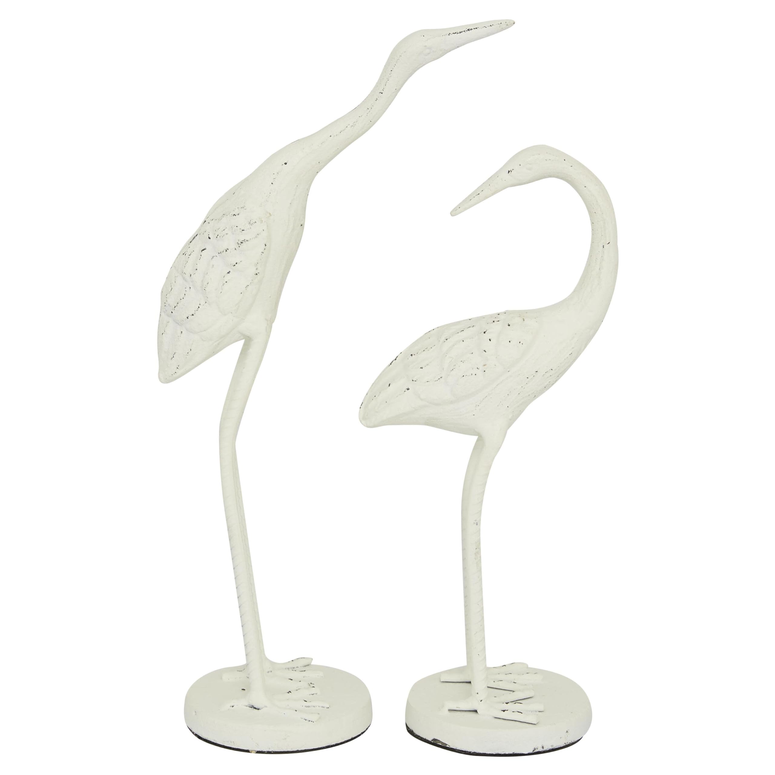 COASTAL DECORATIVE STATUES: Inspired by blissful serenity and the allure of the sea, where soothing hues and natural textures bring effortless charm to the home METAL SCULPTURAL ACCENTS: Made from high-quality iron, the white decorative sculpture set exudes modern elegance WHITE HOME DECOR FIGURINES: The decorative statues set features a matte white finish that catches the eye BIRD ACCENT STATUES: The iron set of 2 sculptures is designed with intricate detailing and sturdy bases, ensuring both visual appeal and stability 2 SMALL SIZE SCULPTURAL STATUES: Each white metal sculpture measures 3.0L x 4.9W x 11.55H , 3.0L x 3.3W x 9.55H inches, and collectively weighs 2.79 lbs