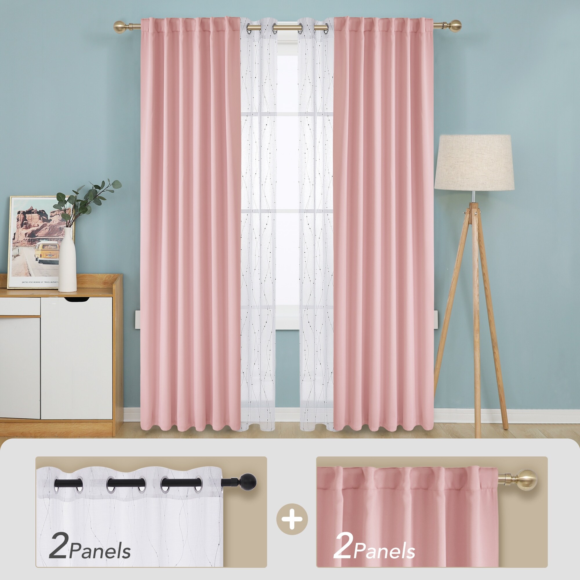 Deconovo Mix & Match Blackout and Silver Print Sheer 4 Piece Curtain Panel Set