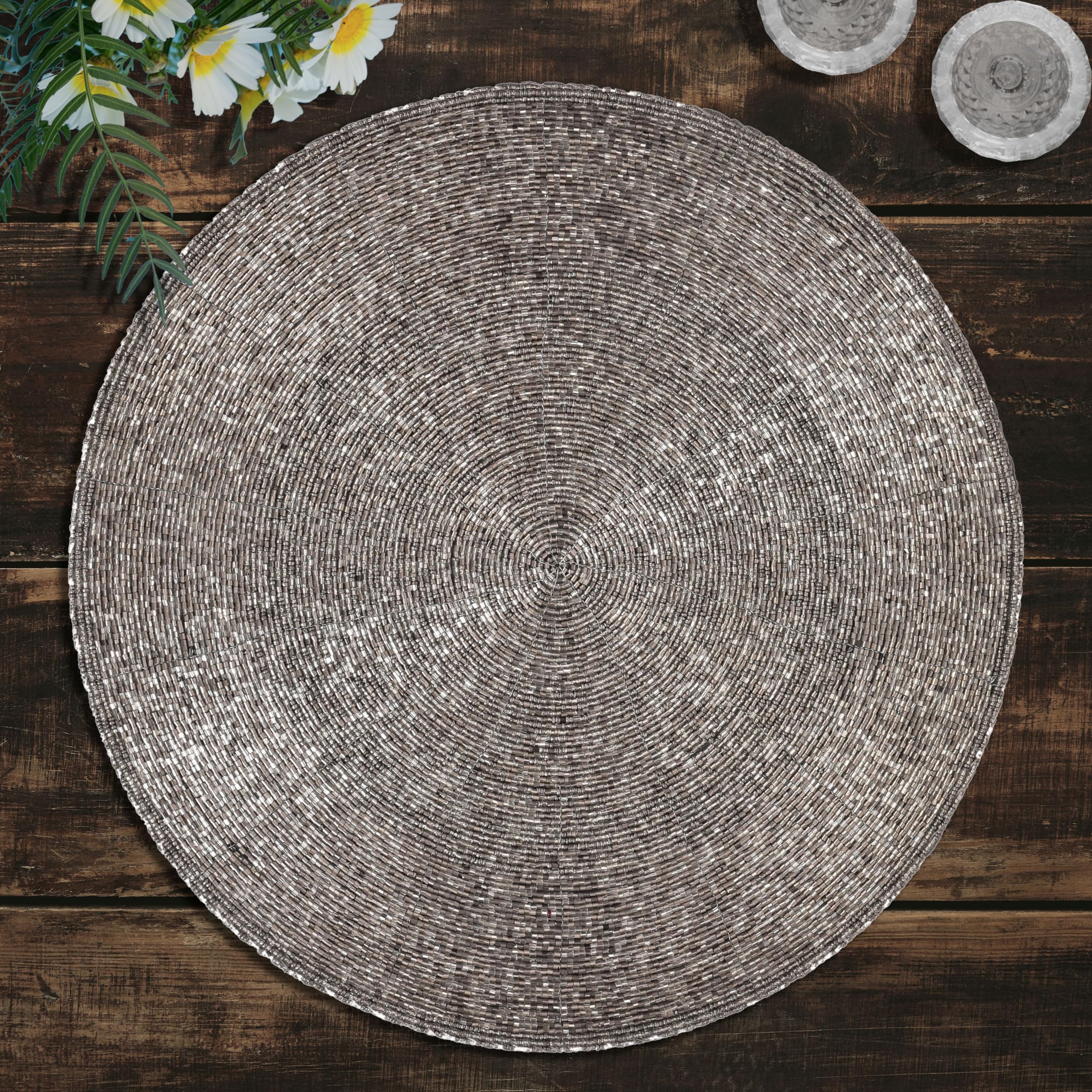 Decozen Round Placemats Set of 8-14 Inch Heat Resistant Farmhouse Rustic Beaded Placemats, Round Dining Table Placemats, Decorations for Home, Wedding