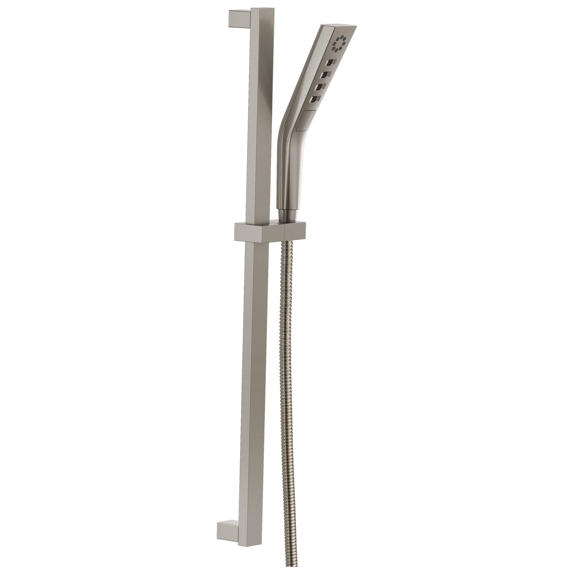 3X COVERAGE: Delta H2Okinetic PowerDrench Spray provides 3X more coverage than a standard shower head by creating a unique wave pattern and larger water droplets for more intensity and warmth 3 POWERFUL SPRAY SETTINGS: Choose between H2OKinetic PowerDrench spray, massaging spray, and pause RESISTS WATER SPOTS: Delta Lumicoat finishes easily wipe clean, repel liquids, and are guaranteed to resist mineral buildup and hard water stains on your hand held shower HOSE INCLUDED. A 60-in. stretchable, metal hose in a coordinating finish is conveniently included in the box for the perfect slide bar handheld hand shower with hose LIFETIME LIMITED WARRANTY: You can install with confidence, knowing this Delta slidebar hand held shower is backed by Delta Faucet's Lifetime Limited Warranty