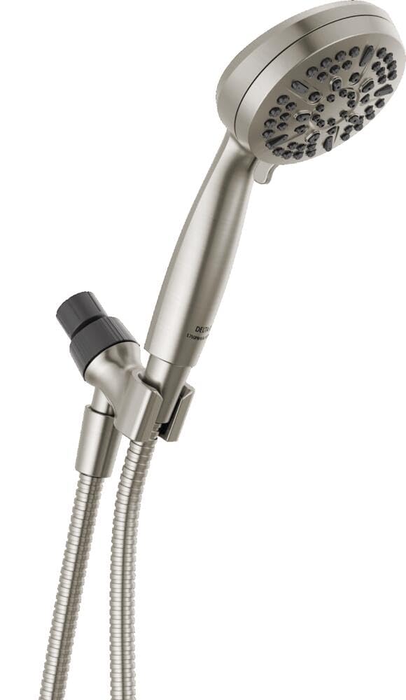 INTENSELY POWERFUL: Immerse yourself in the steady, intensely powerful full body spray with forceful streams of water to satisfy all of your showering needs 5 POWERFUL SPRAY SETTINGS: Choose between high pressure full body spray, full spray with massage, massaging spray, shampoo rinsing spray, pause MASSAGING JETS: Relieve sore, tired muscles with focused, invigorating massaging jets for the ultimate showering experience HOSE INCLUDED: A 60-in. stretchable, metal hose in a coordinating finish is conveniently included in the box LIFETIME LIMITED WARRANTY: You can buy with confidence, knowing that Delta shower heads are backed by Delta's Lifetime Limited Warranty