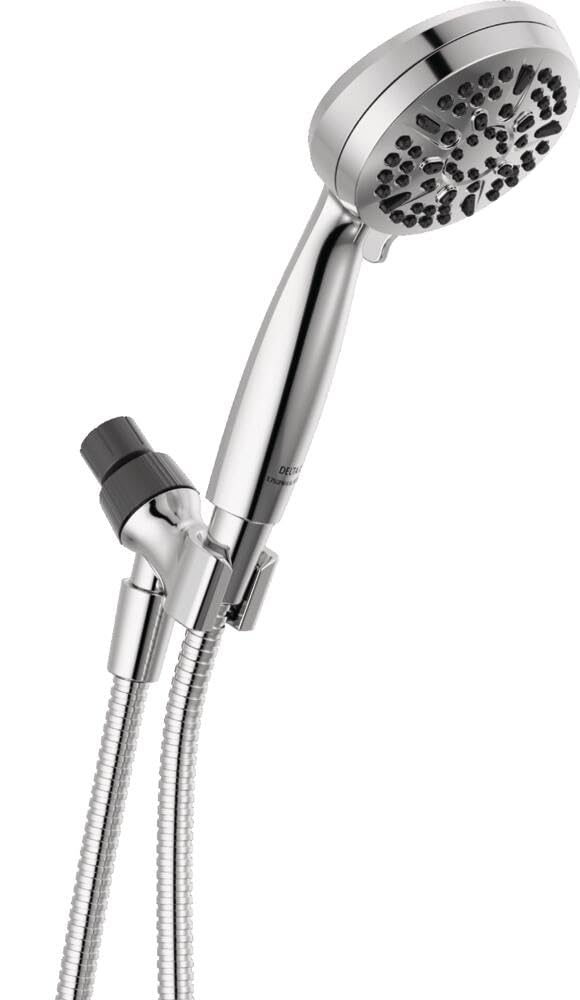 INTENSELY POWERFUL: Immerse yourself in the steady, intensely powerful full body spray with forceful streams of water to satisfy all of your showering needs 5 POWERFUL SPRAY SETTINGS: Choose between high pressure full body spray, full spray with massage, massaging spray, shampoo rinsing spray, pause MASSAGING JETS: Relieve sore, tired muscles with focused, invigorating massaging jets for the ultimate showering experience HOSE INCLUDED: A 60-in. stretchable, metal hose in a coordinating finish is conveniently included in the box LIFETIME LIMITED WARRANTY: You can buy with confidence, knowing that Delta shower heads are backed by Delta's Lifetime Limited Warranty