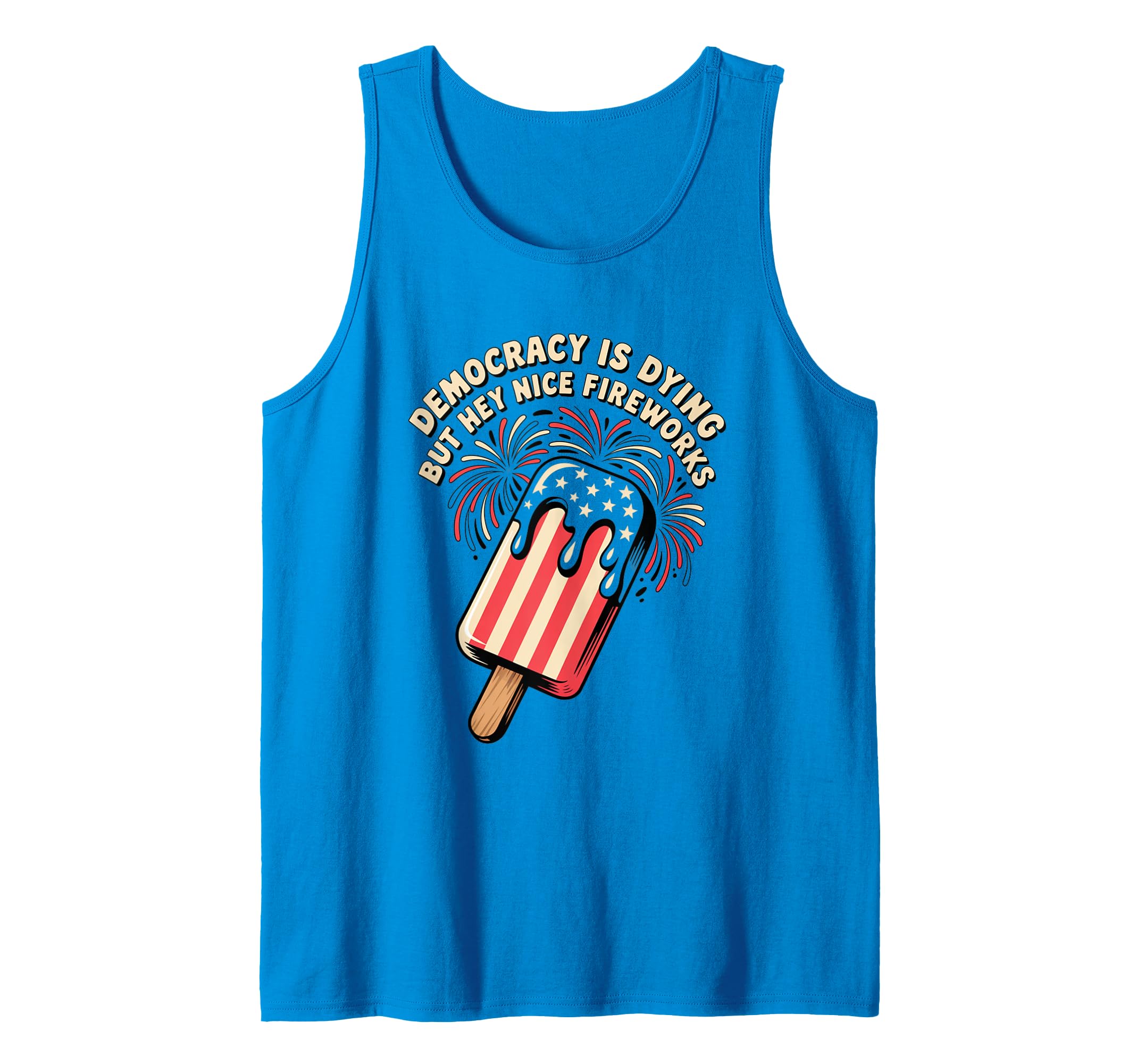This sarcastic retro Democracy Is Dying But Hey Nice Fireworks 4th of July design is perfect for 4th of july picnic, 4th of july bbq, and 4th of july fireworks. Even celebrate America's birthday 250th anniversary. This 4th of July 2025 design is great for men or women celebrating USA! Lightweight, Classic fit, Double-needle sleeve and bottom hem